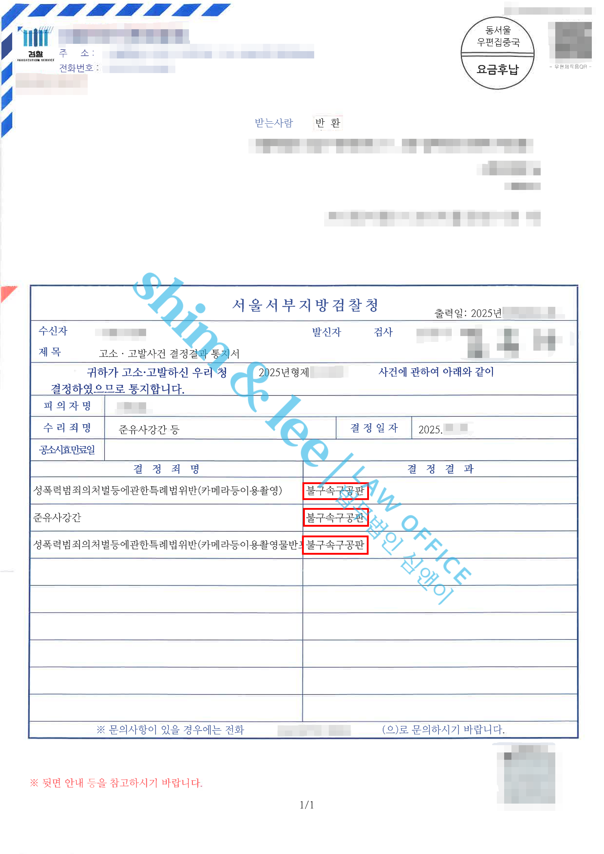 -피해자 입장에서는 이러한 절차적 판단이 이루어지는 과정이 낯설고 두렵게 느껴질 수 있습니다. 심앤이는 수사 과정 전반에서 피해자가 위축되지 않도록 곁에서 함께하며, 모든 절차가 정확하고 안전하게 이루어질 수 있도록 끝까지 조력하겠습니다.