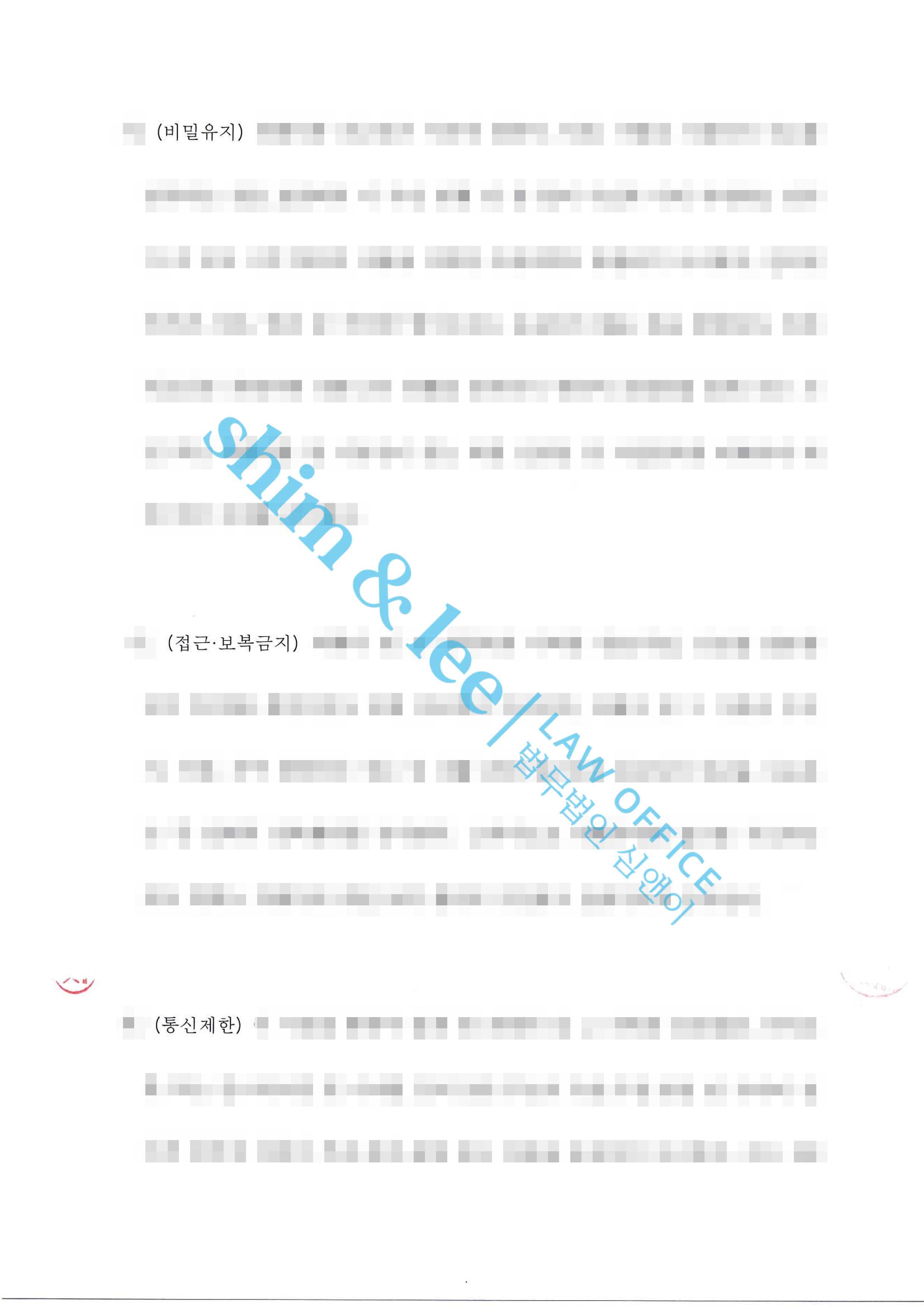 - 심앤이는 금전적 보상에만 그치지 않고 의뢰인이 혹시 모를 2차 피해를 입지 않도록 비밀유지, 접근·보복금지, 통신제한, 소제기금지 등을 포함한 합의서를 작성하여 의뢰인의 안전을 끝까지 보호했습니다.