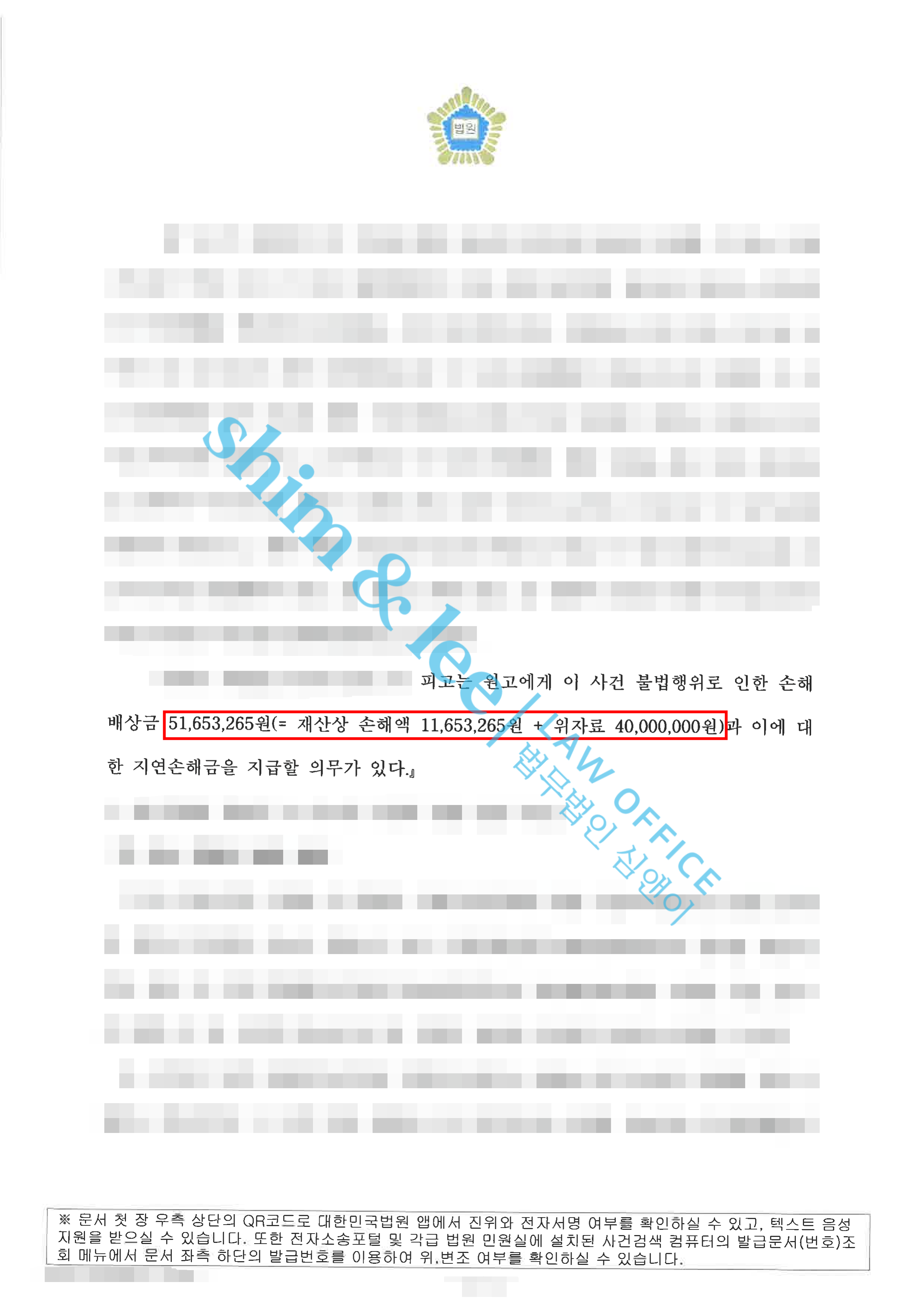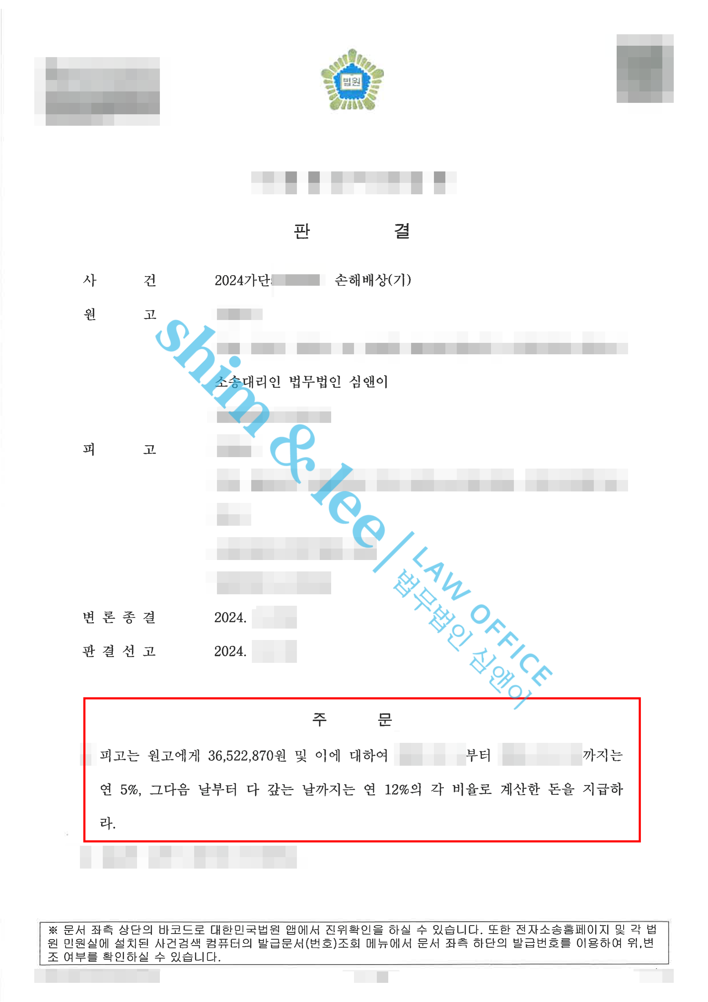 - 따라서 심앤이는 1심에서 인정된 3,652만 원보다 약 1,500만 원 증액된 금액을 인용 받는 뿌듯한 결과를 얻었습니다.