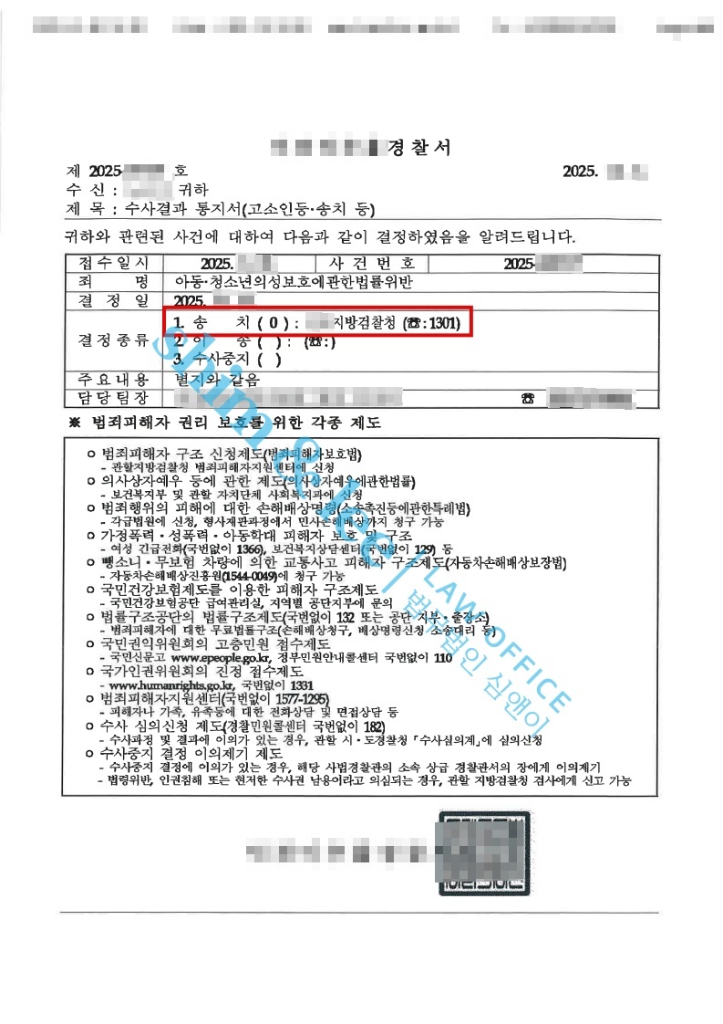 - 심앤이는 가해자의 혐의를 명확하게 특정했을 뿐만 아니라, 미성년자인 피해자가 가해자의 전형적인 ‘그루밍 성범죄’ 방식에 판단력이 흐려지고 거절하기 어려운 상태에 있었다는 점을 구체적으로 설명했습니다. 그 결과 가해자가 미성년자인 피해자를 집으로 유인해 거부할 수 없는 상황을 만든 뒤 성관계를 강요하고 성착취물을 제작한 혐의가 모두 인청되어, 사건은 검찰에 송치되었습니다.