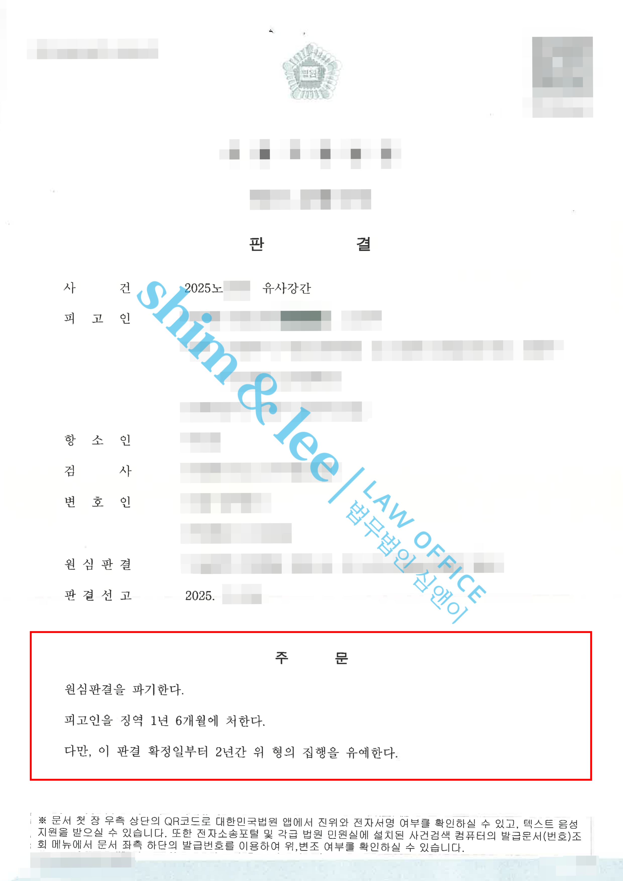 형사고소성관계 중 몰카 피해, 집행유예 3년 선고 받아낸 사건 2025.11.07징역 1년 / 집행유예 3년