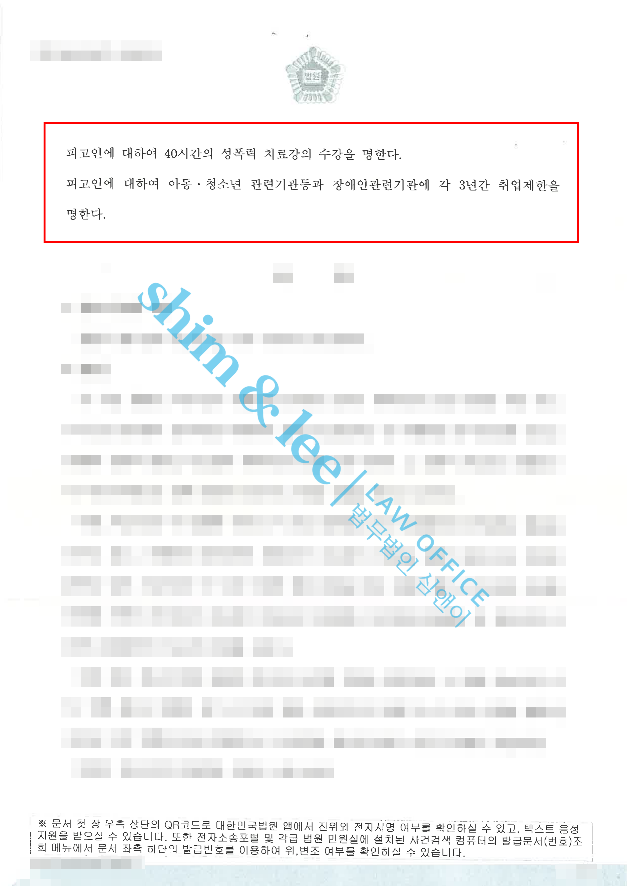 취업제한 3년 / 성폭력 치료강의 40시간 -