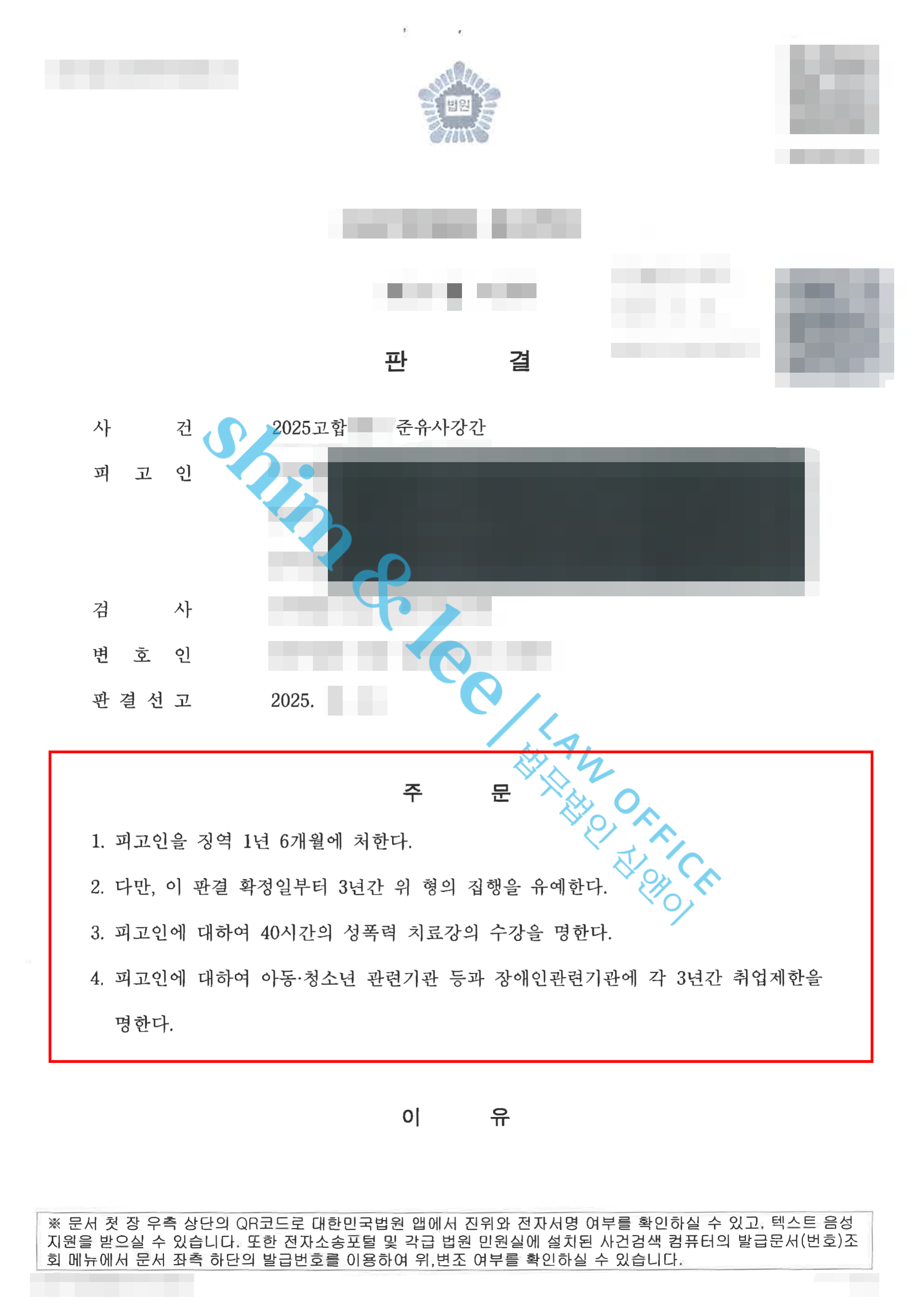 성폭력 치료강의 40시간 / 합의금 2,000만 원 -