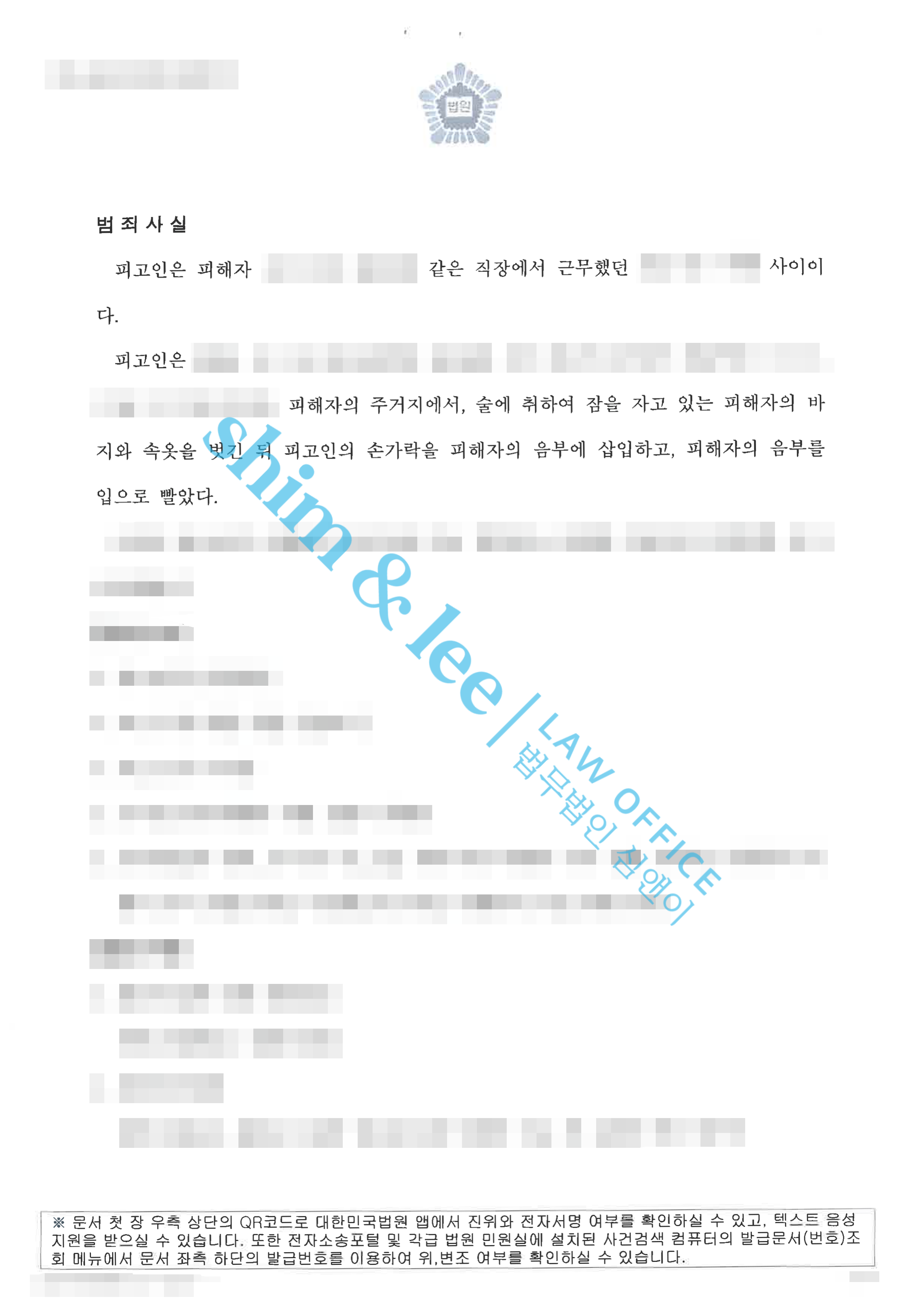 형사고소술에 취해 잠든 사이 직장 동료에게 유사강간 피해 당한 사건 2025.10.17불구속 구공판 -