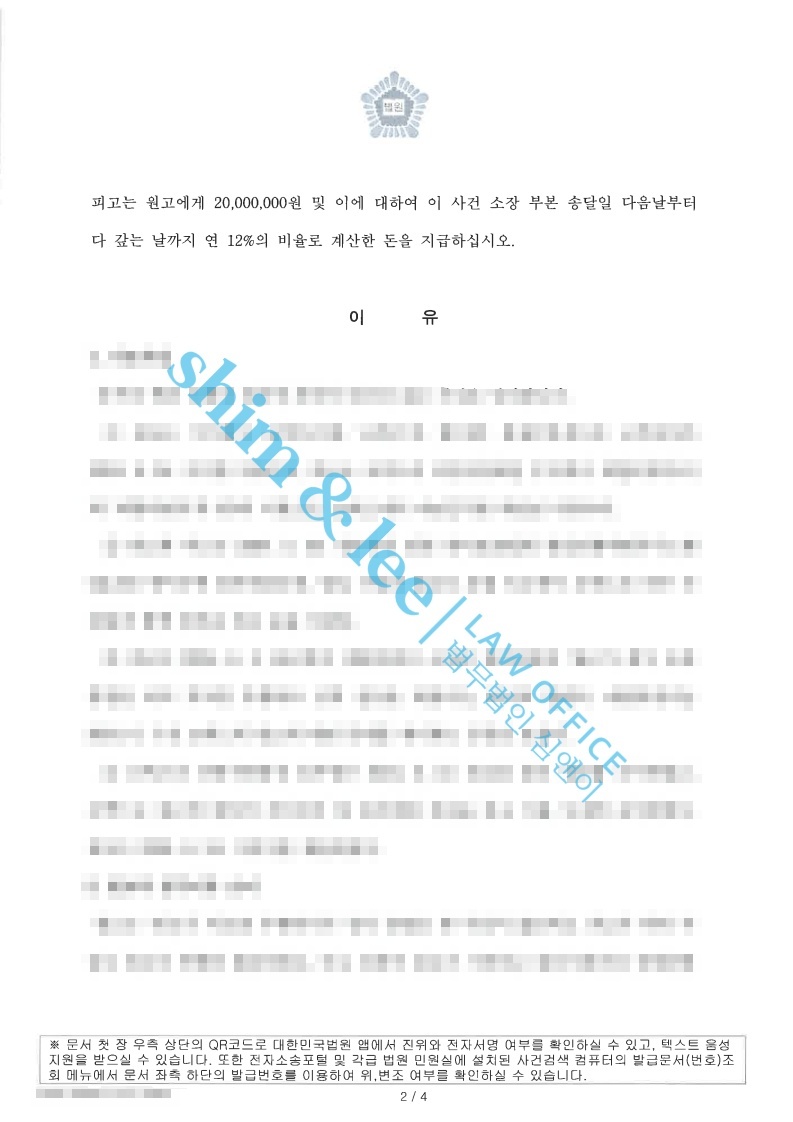 - 억울하게 가해자로부터 민사 소장을 받았던 의뢰인은 가해자가 청구한 금액 전부를 방어해낼 수 있었다는 점에 크게 안도하셨고, 무엇보다도 가해자의 소송이 2차 가해로 판단 받았다는 사실 자체가 큰 위로가 되었다며 심앤이에 감사의 뜻을 전하셨습니다.