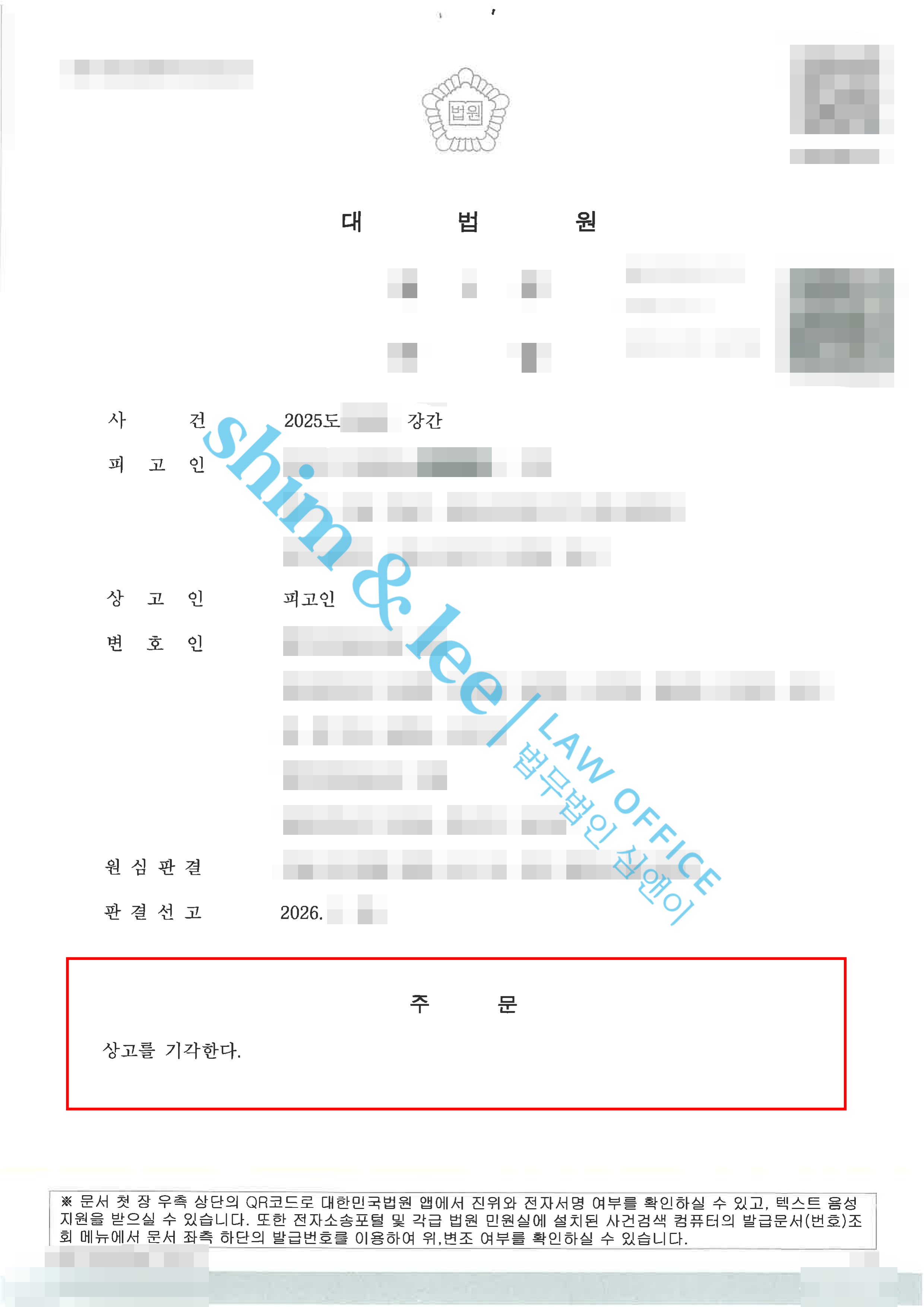 - 하지만 가해자는 항소심 결과에 불복하여 상고하였고, 의뢰인은 다시 한 번 심앤이를 찾아오셨습니다.