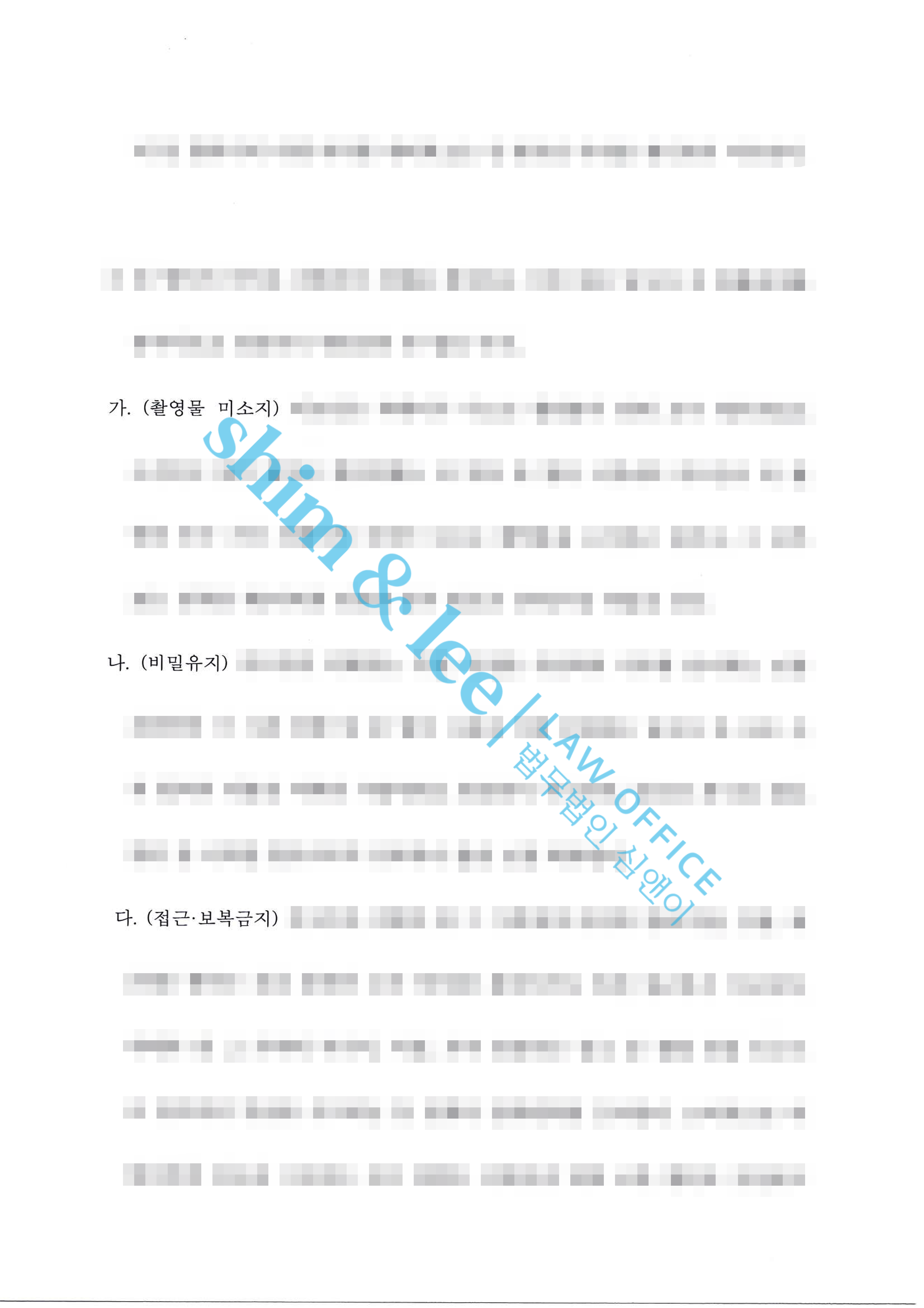 최종 합의서에는 촬영물 미소지, 비밀유지, 접근•보복금지, 통신제한, 소제기금지 등 의뢰인에게 유리한 조항을 모두 추가하여, 합의 이후에도 의뢰인을 보호할 수 있는 장치를 마련해두었습니다.