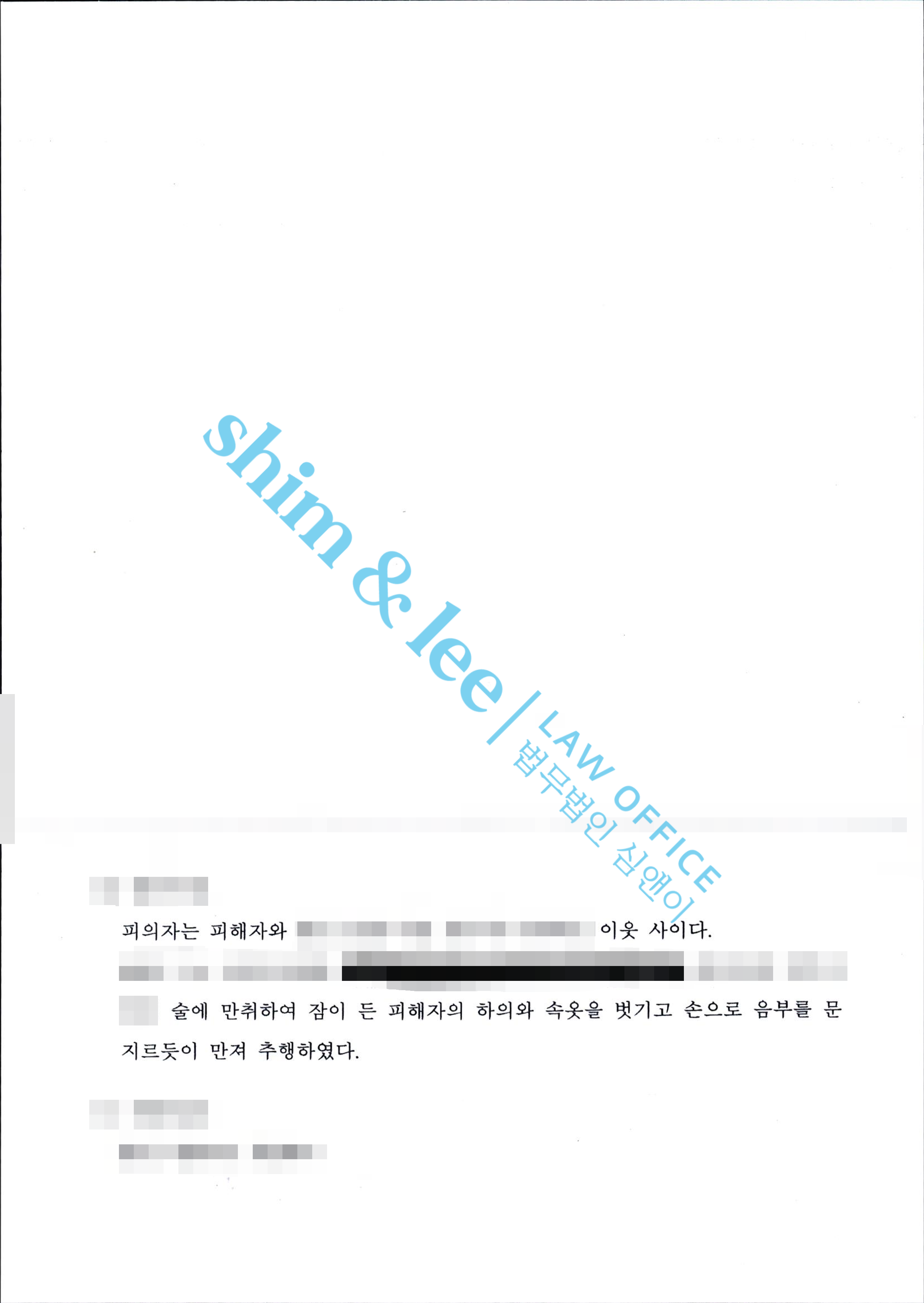 - 의뢰인과 가해자는 같은 아파트에 거주하는 이웃으로 일년에 한두번 이웃주민들과 다 같이 모여 술자리는 몇번 가졌지만 이성적인 호감이 있거나 사적으로 교류하는 사이는 아니었습니다.