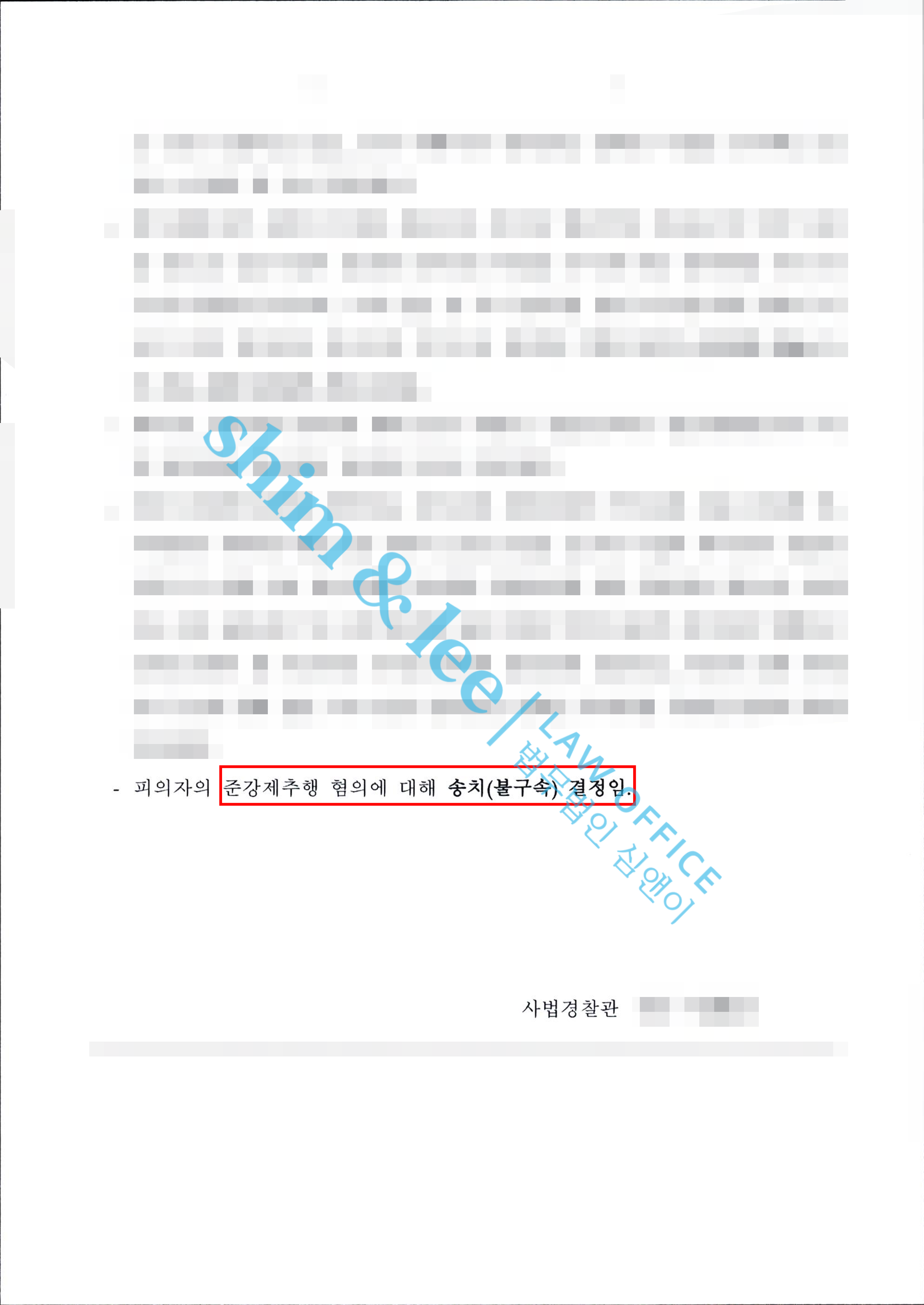 - 보완수사 이행 결과, 담당 수사관은 기존 의견을 변경하여 가해자에게 추행 혐의가 인정된다 판단하고 사건을 검찰에 송치하였습니다.