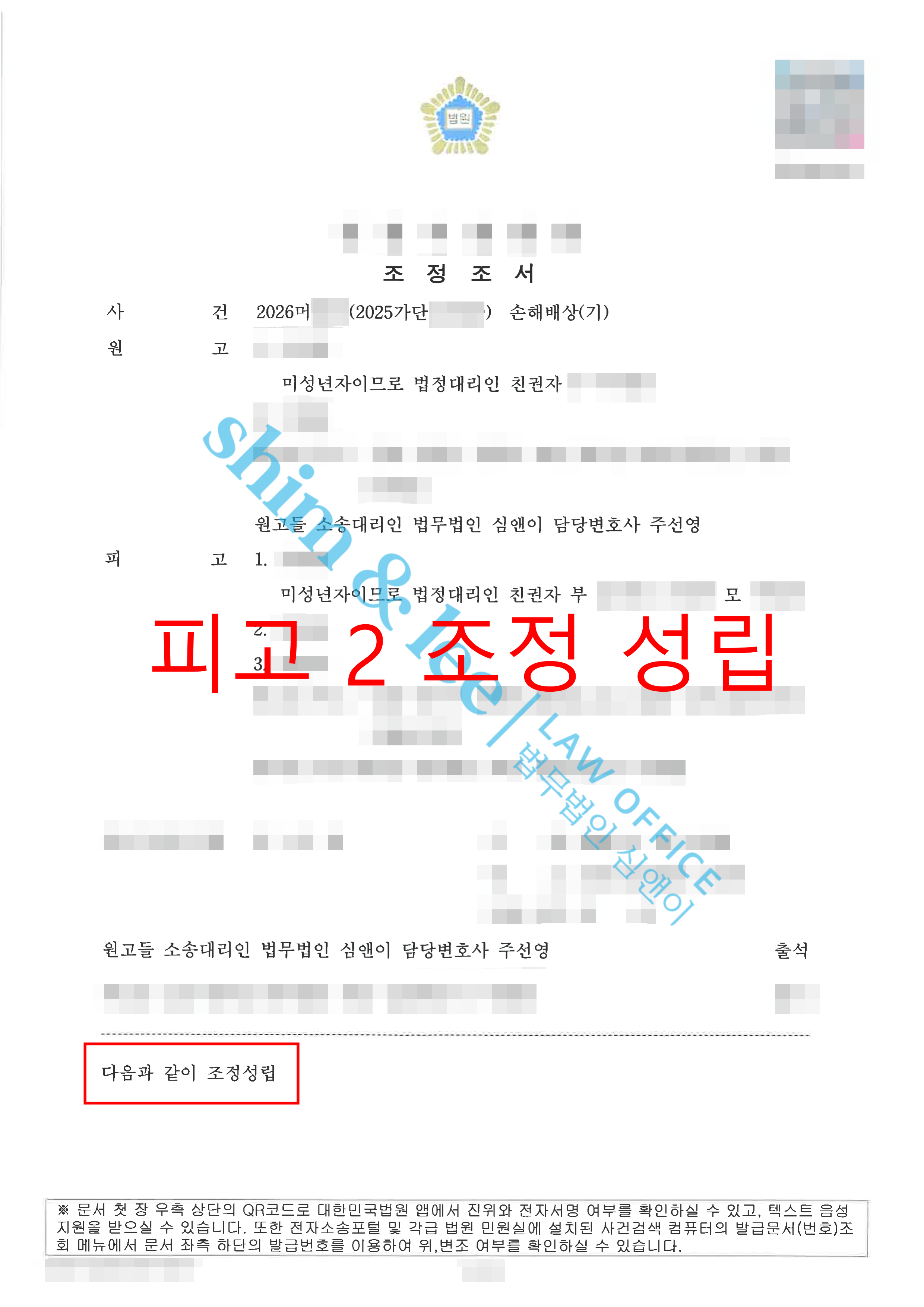 - 소장을 확인한 재판부는 남은 가해자들 또한 원만하게 합의하고 소송을 빠르게 끝낼 수 있도록 조정기일을 열어줬습니다. 심앤이는 피해자를 대신하여 조정기일에 직접 출석해 피해자의 입장을 상세히 전달하였습니다.