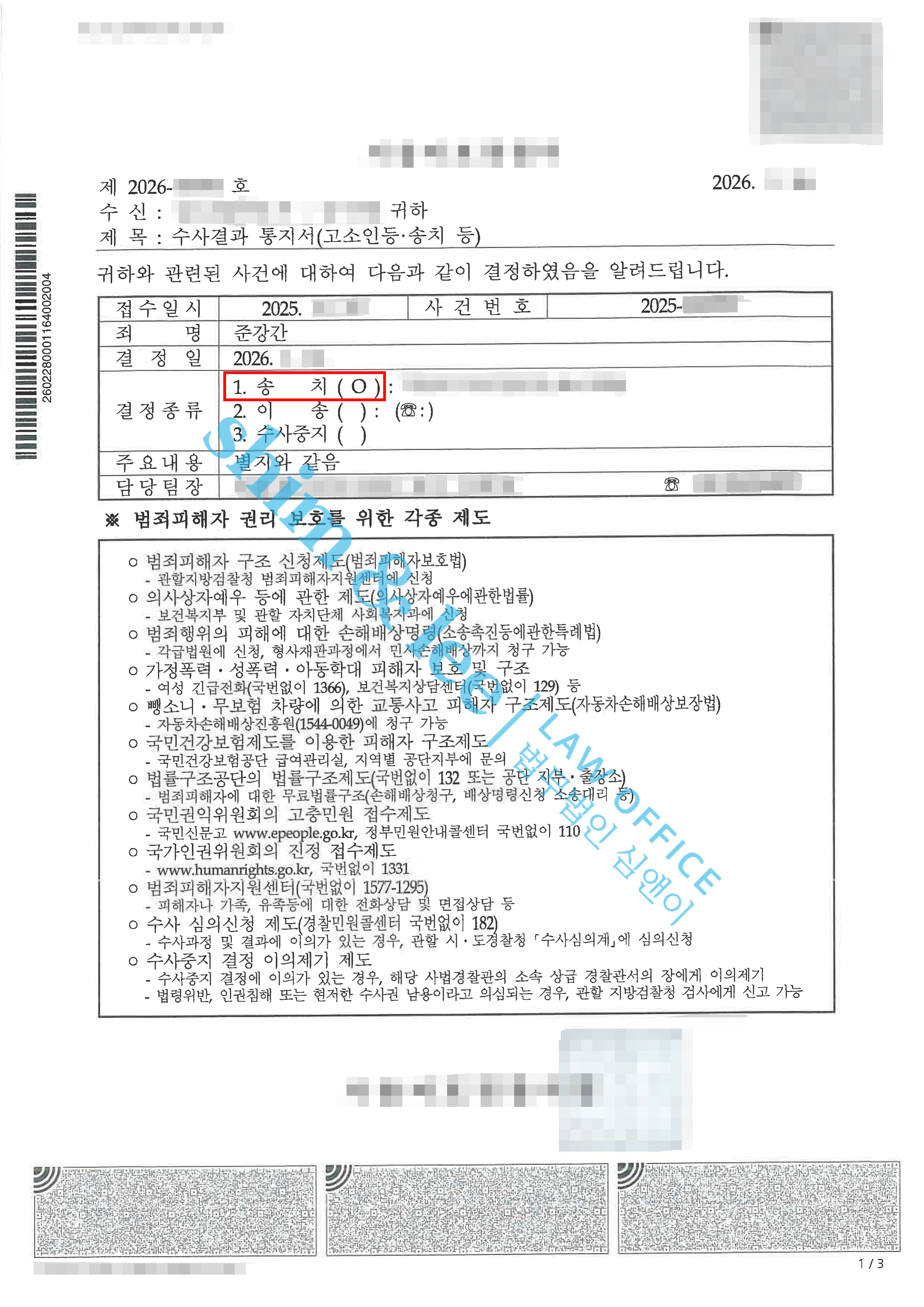 형사고소이웃주민에게 준강제추행 피해, 불송치 후 보완수사에서 송치로 바꿔낸 사건 2026.03.06불송치의견 변경