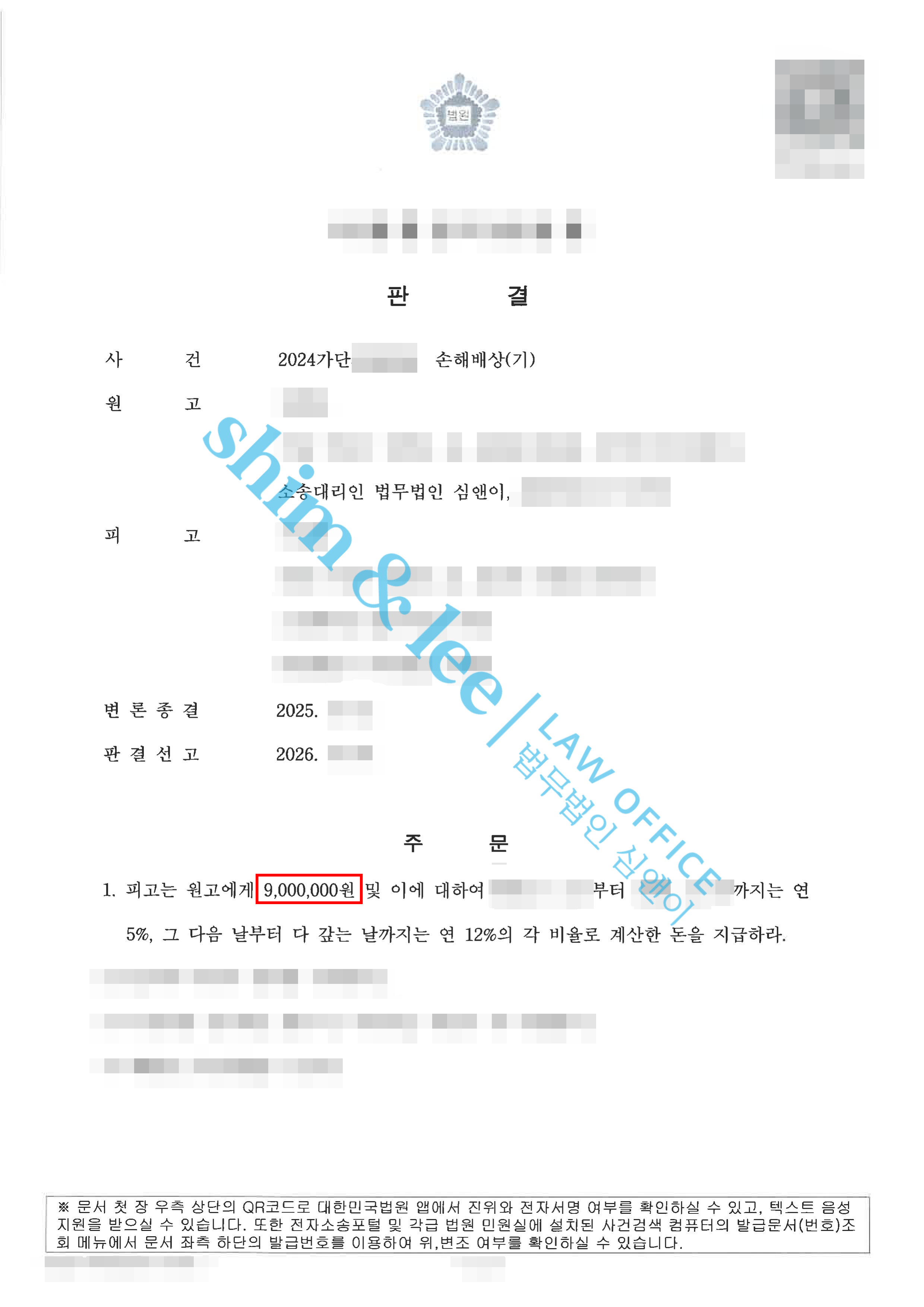 민사소송2025.12.12손해배상금 24,745,670원 -