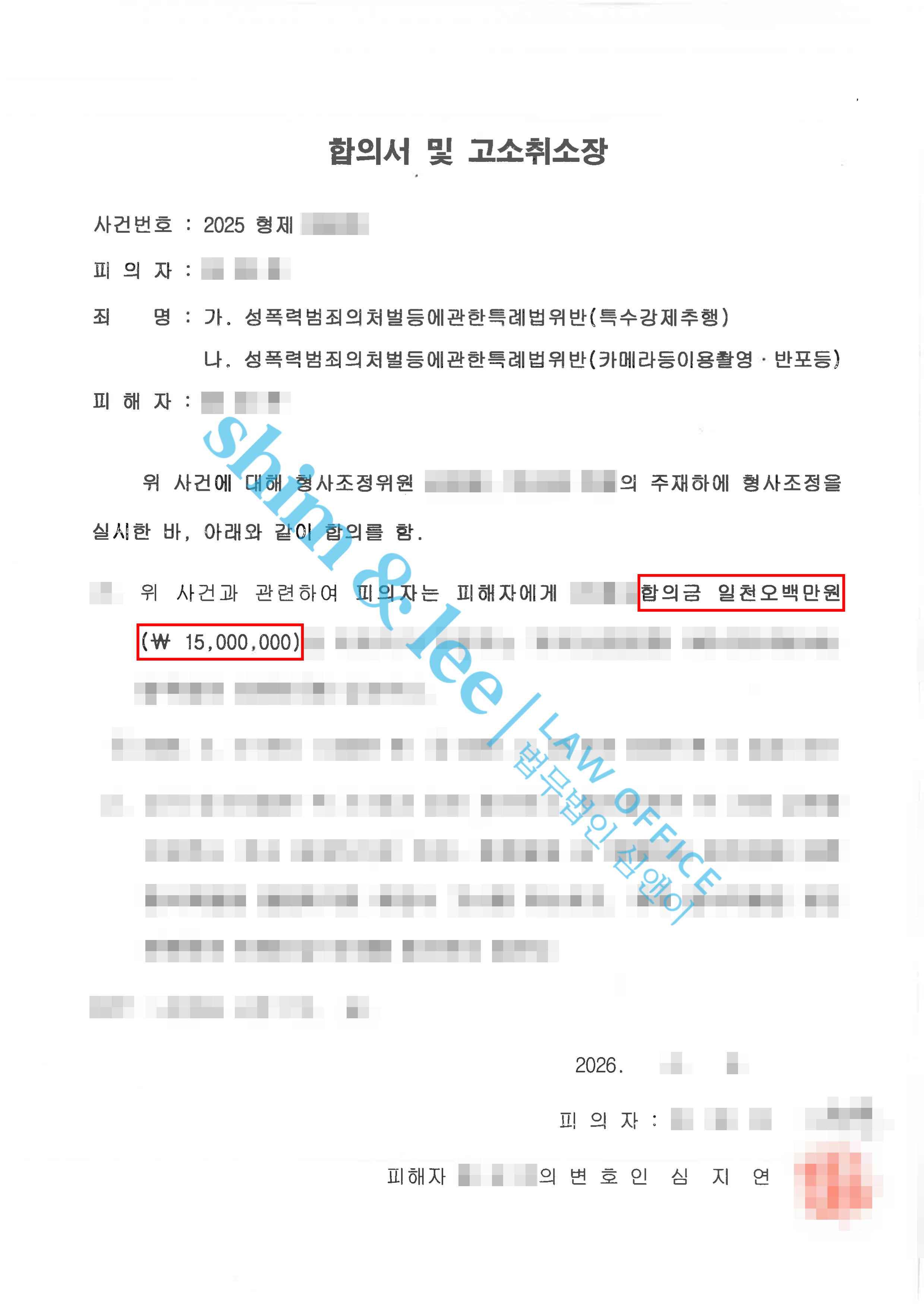 합의대행남자친구로부터 불법 촬영, 몰카 피해 입은 사건 2026.02.06합의금 3,500만 원 -