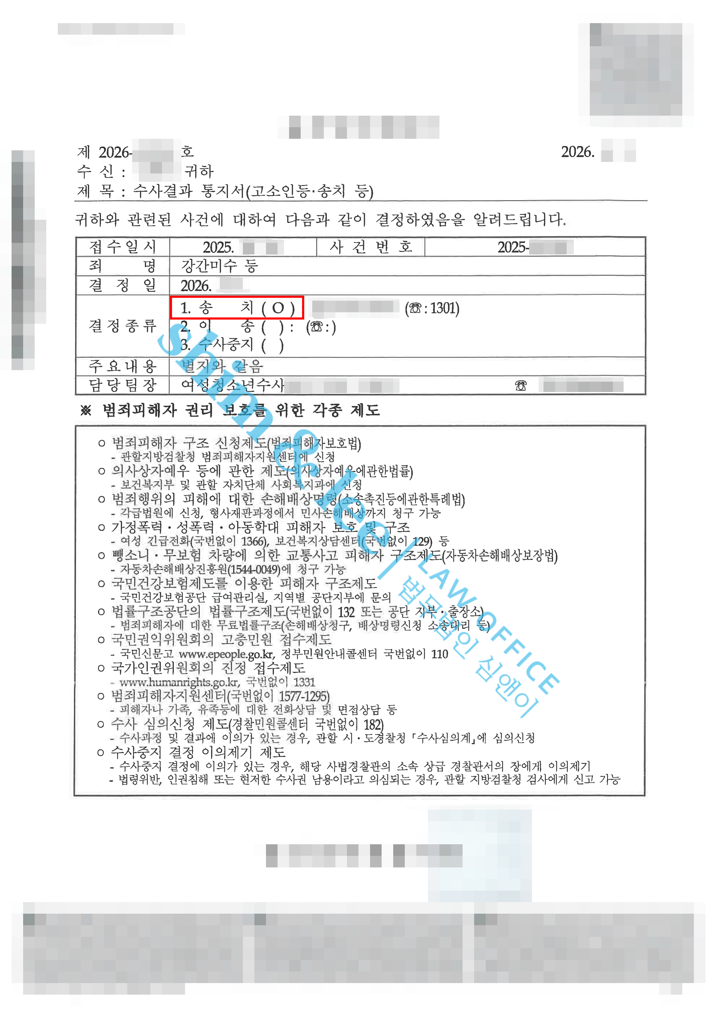 형사고소이웃주민에게 준강제추행 피해, 불송치 후 보완수사에서 송치로 바꿔낸 사건 2026.03.06불송치의견 변경