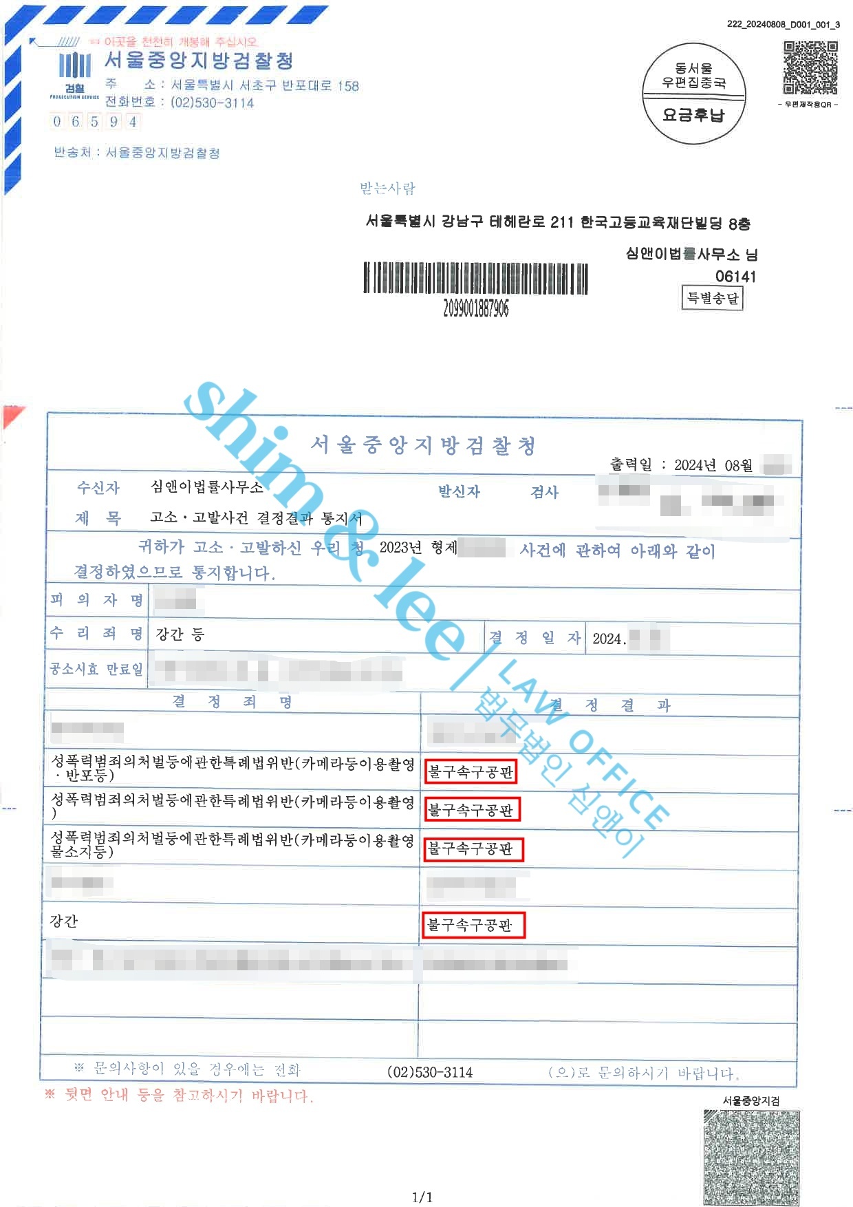 - 오랜 기다림 끝에 검찰 단계에서 강간, 카메라등이용촬영죄 모두 혐의가 있다고 판단되어 모든 죄명에 대해 기소 처분을 받아냈습니다.