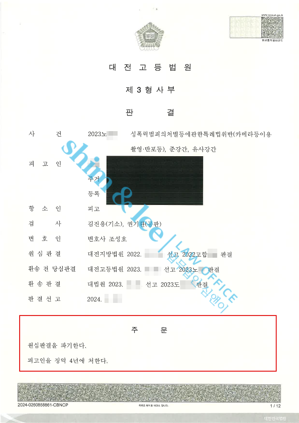 형사고소성관계 중 몰카 피해, 집행유예 3년 선고 받아낸 사건 2025.11.07징역 1년 / 집행유예 3년