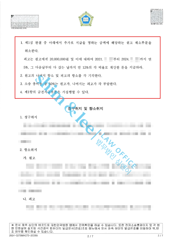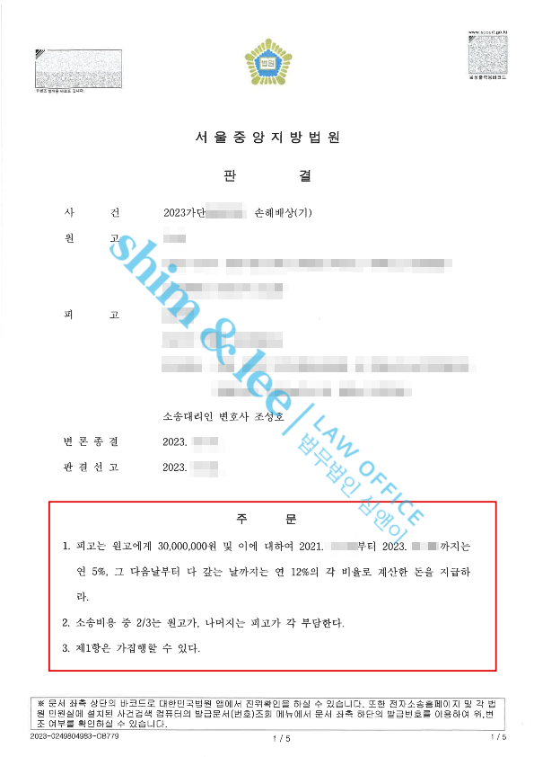 민사소송2025.12.12손해배상금 24,745,670원 -