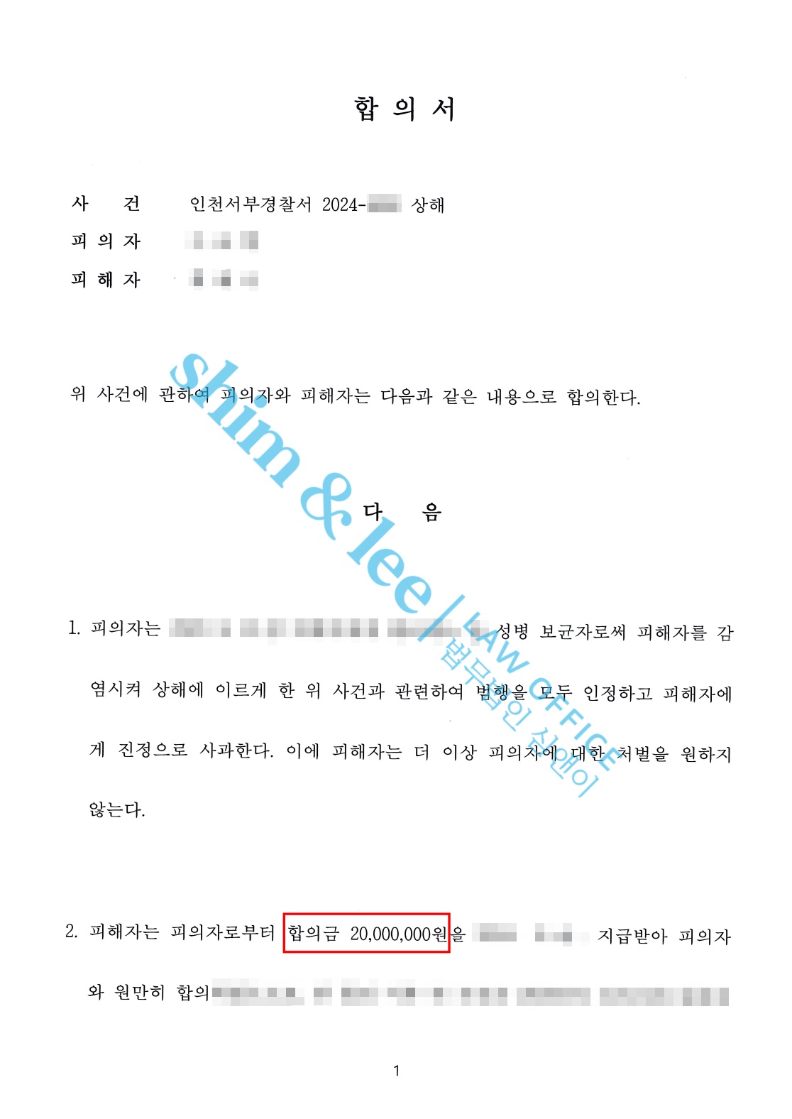 합의금 2,000만 원 -
