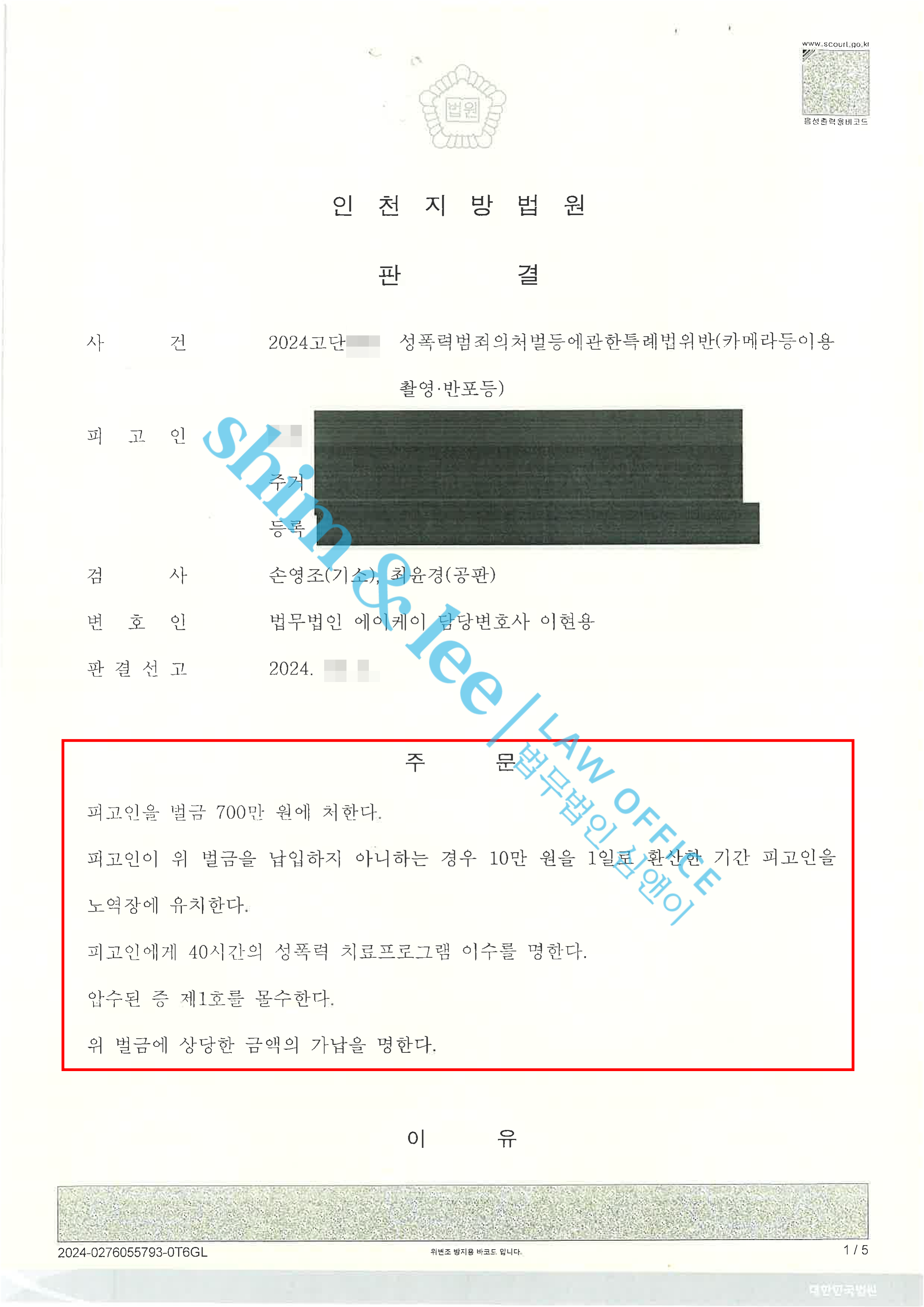 - 최종적으로 합의를 진행했음에도 불구하고, 벌금 700만 원, 40시간의 성폭력 치료프로그램 이수명령 그리고 압수수색 진행 시 나왔던 영상물을 몰수한다는 판결을 받게 됩니다.