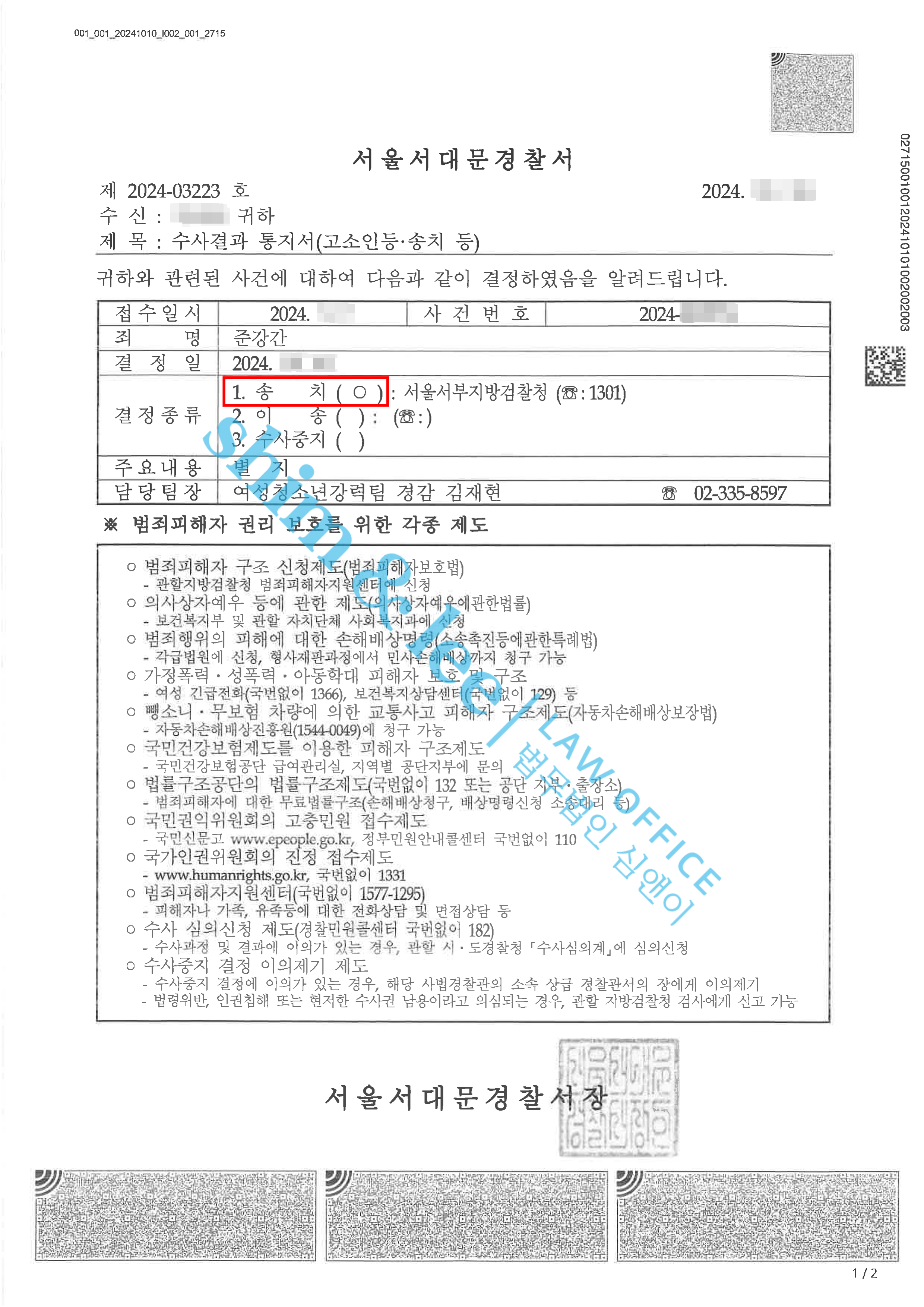또한, 당시 피해자는 심신상실과 항거불능 상태로, 성관계를 맺거나 이에 동의할 수 있는 상태가 아니었으며 가해자는 그러한 상태를 이용하여 범행을 저질렀다는 내용을 담은 변호사 의견서와 관련 판례, 엄벌 탄원서를 제출하여 빠르게 송치될 수 있도록 하였습니다. -