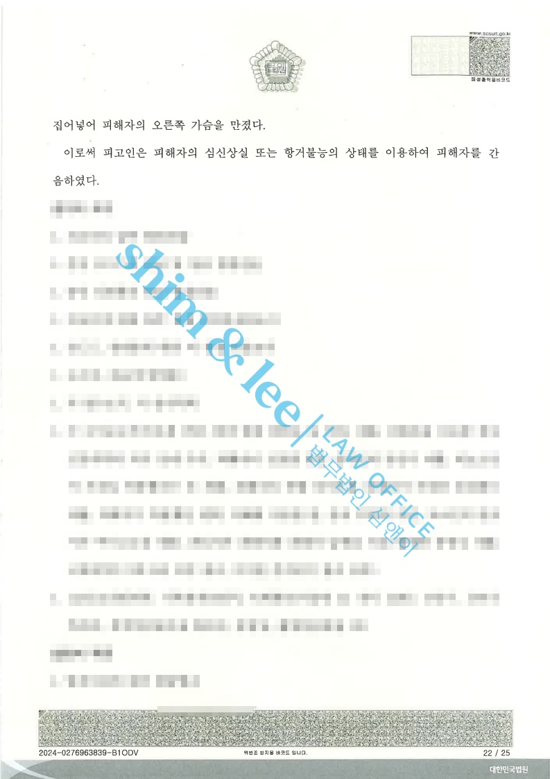 민사소송언니 친구가 갑자기 피해자를 유사강간한 사례 2023.06.28징역 2년 / 집행유예 3년