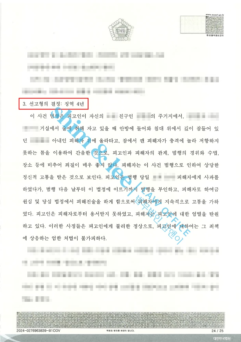 형사고소오픈채팅에서 만난 남자에게 강간당한 사건 2023.05.24징역 4년 / 성폭력 치료강의 40시간