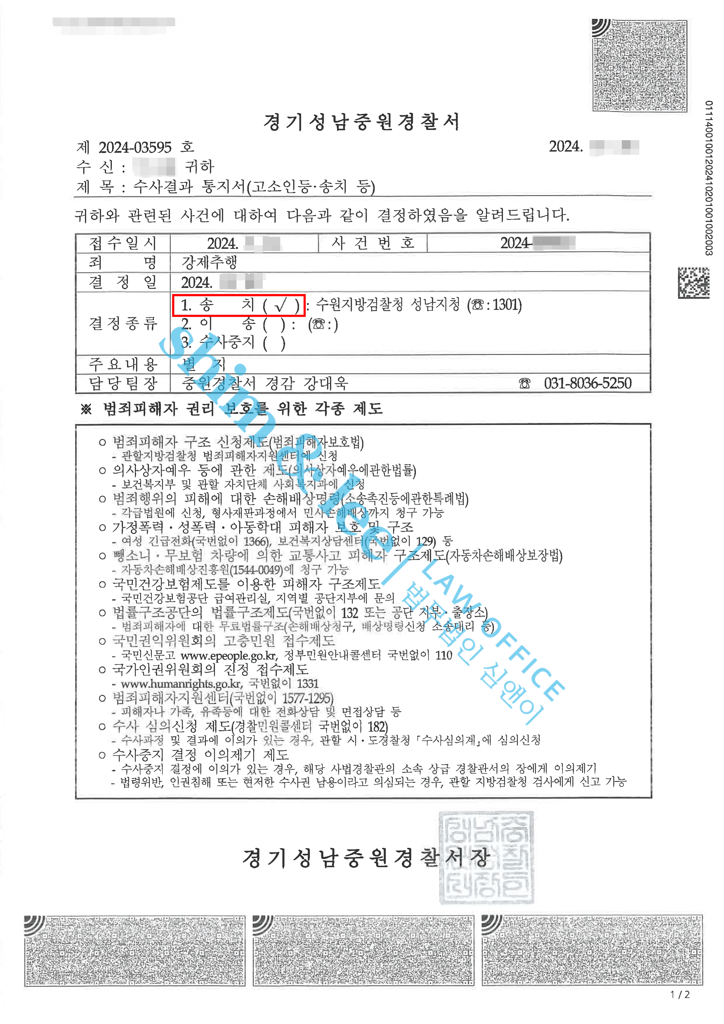 형사고소직장 상사에게 성추행 당한 사건 2025.09.05검찰송치 -