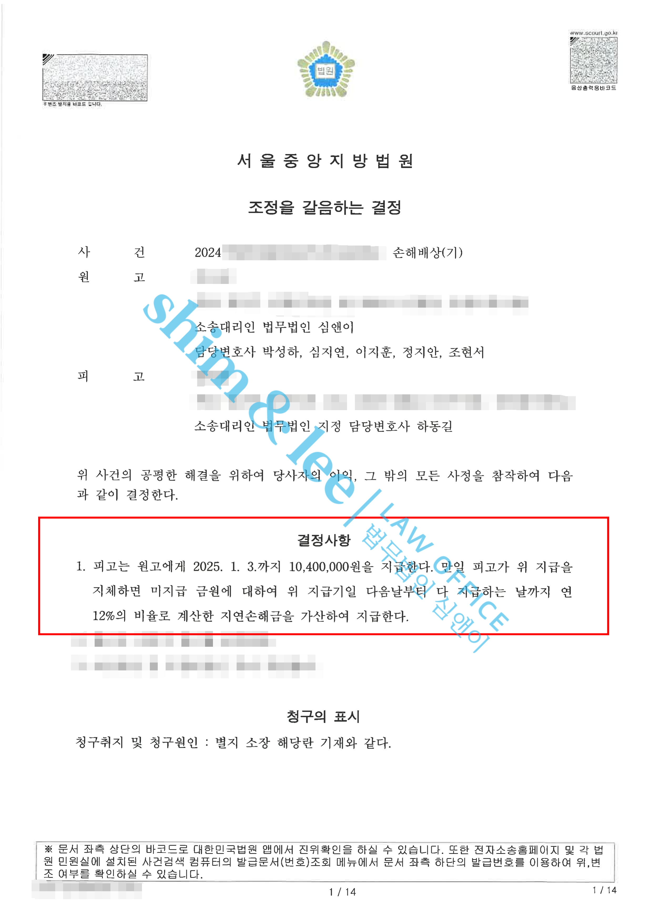민사소송2025.12.12손해배상금 24,745,670원 -