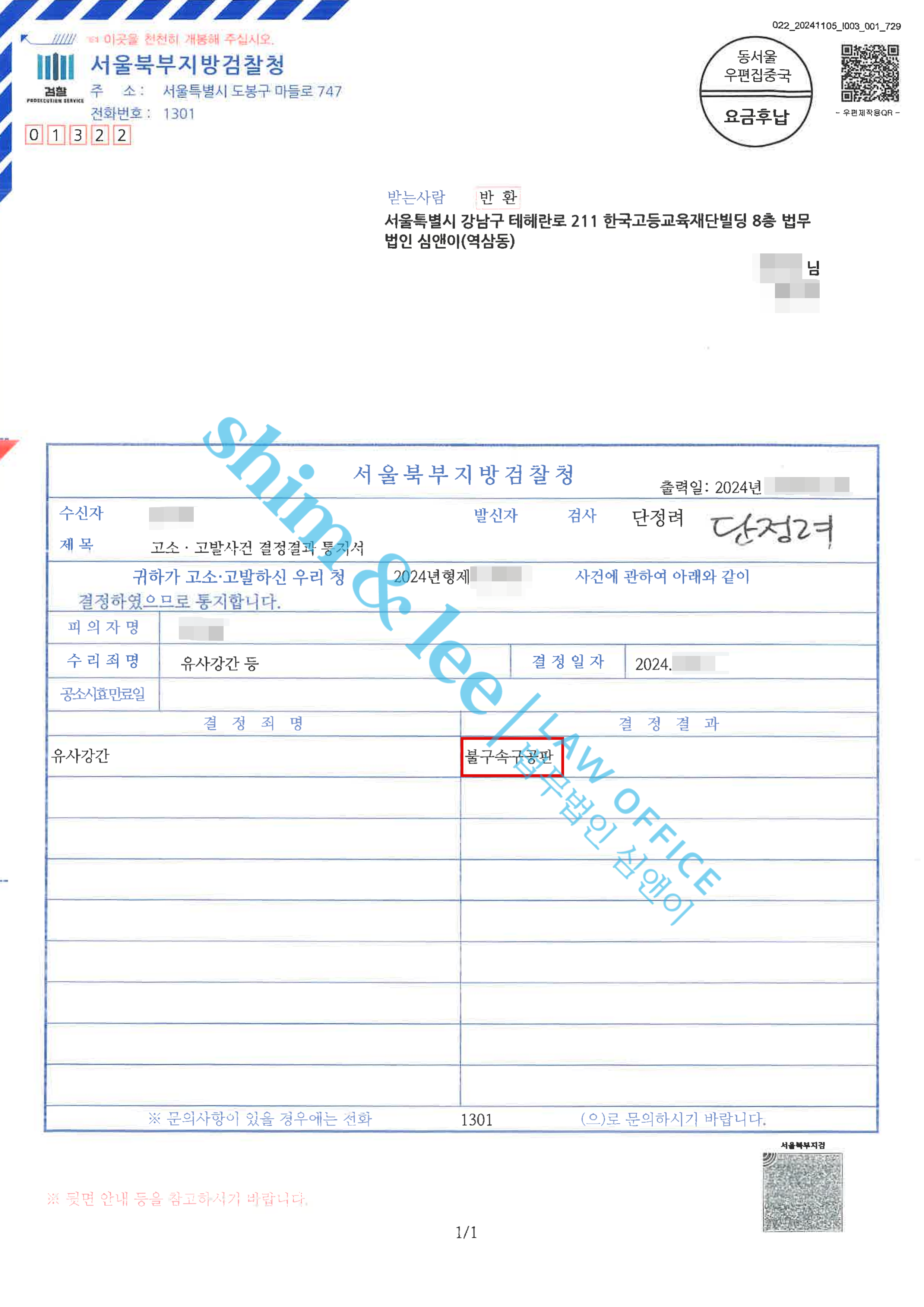 형사고소마사지사를 유사강간한 사례 2022.05.17정식기소처분 -