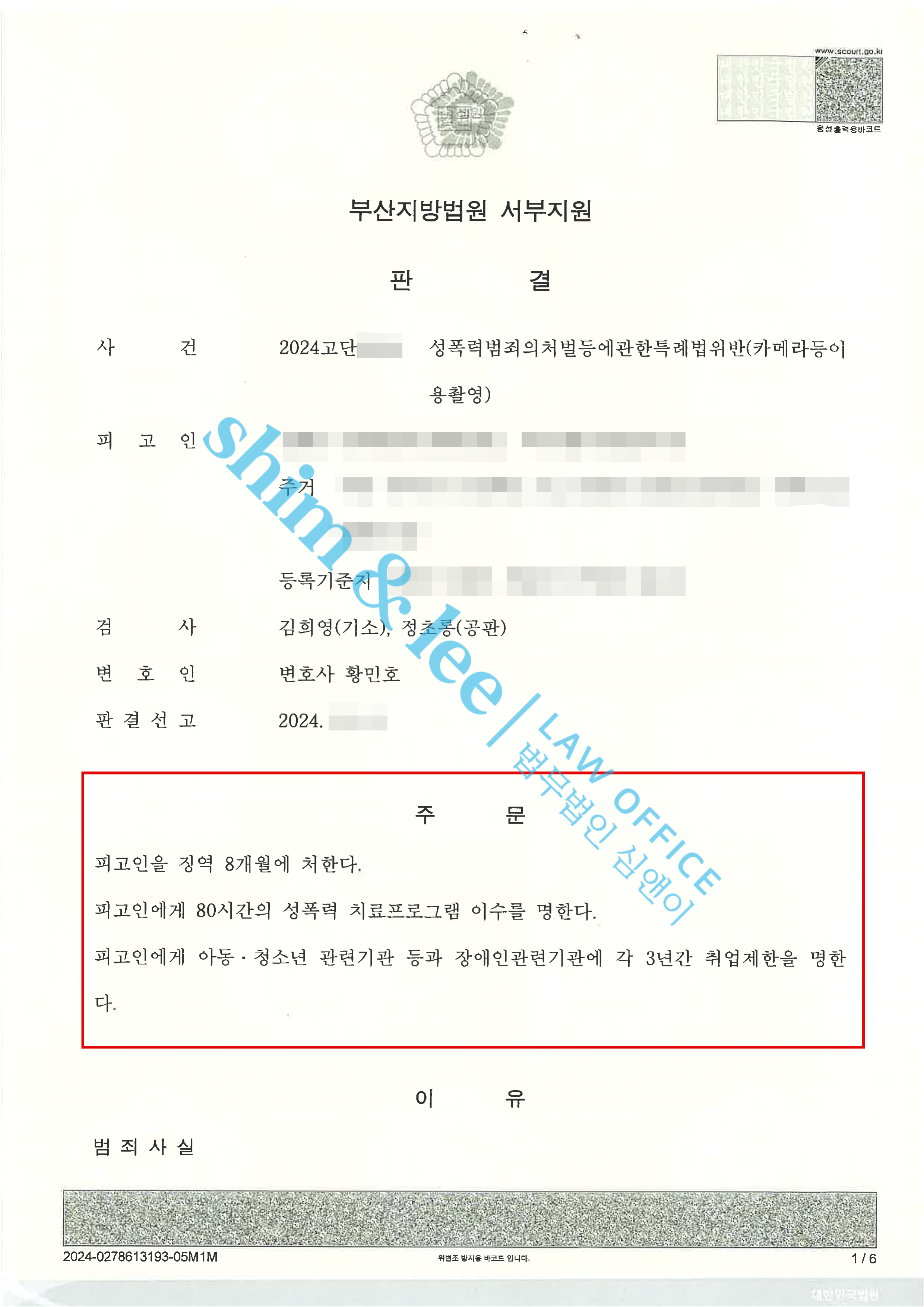 5. 이에 대표 변호사님은 ①합의과정 일시를 전부 특정하여 첨부하고, ②진심 어린 사과 없이 무상 합의를 제안한 가해자의 성의 없고 반성 없는 태도를 비판하며, ③이 과정에서 의뢰인은 오히려 더 큰 고통을 겪고 엄벌만을 탄원한다는 변호사 의견서를 작성, 선고 전에 제출하여 오로지 감형만을 위해 형식적으로 양형 조사를 신청하고 재판부에는 합의를 위해 노력했다고 거짓말을 하는 가해자를 엄벌에 처해 달라고 요청하였습니다. -