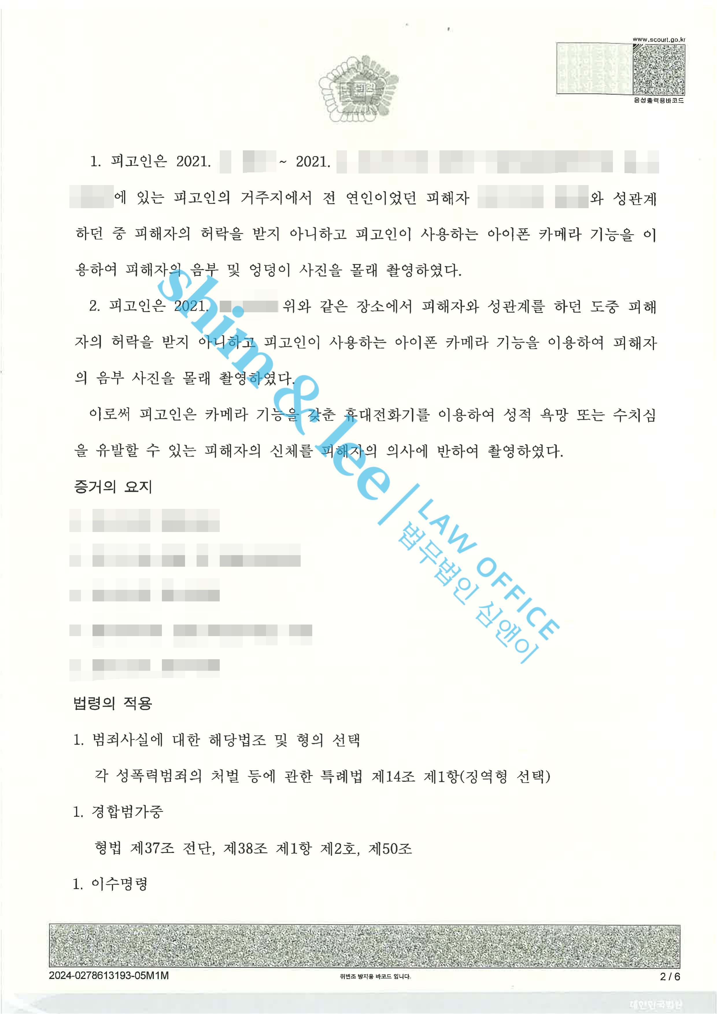 - 카메라이용촬영죄의 경우 약소한 벌금형 정도로 끝난다는 인식이 많습니다만, 최근에는 피해자가 적극적으로 대응할 경우에는 실형까지도 선고될 수 있는 중한 범죄로 취급되어가는 추세입니다. 비슷한 사건으로 검색하시는 피해자분들께 조금이나마 도움이 되는 사례 소개가 되었으면 합니다.