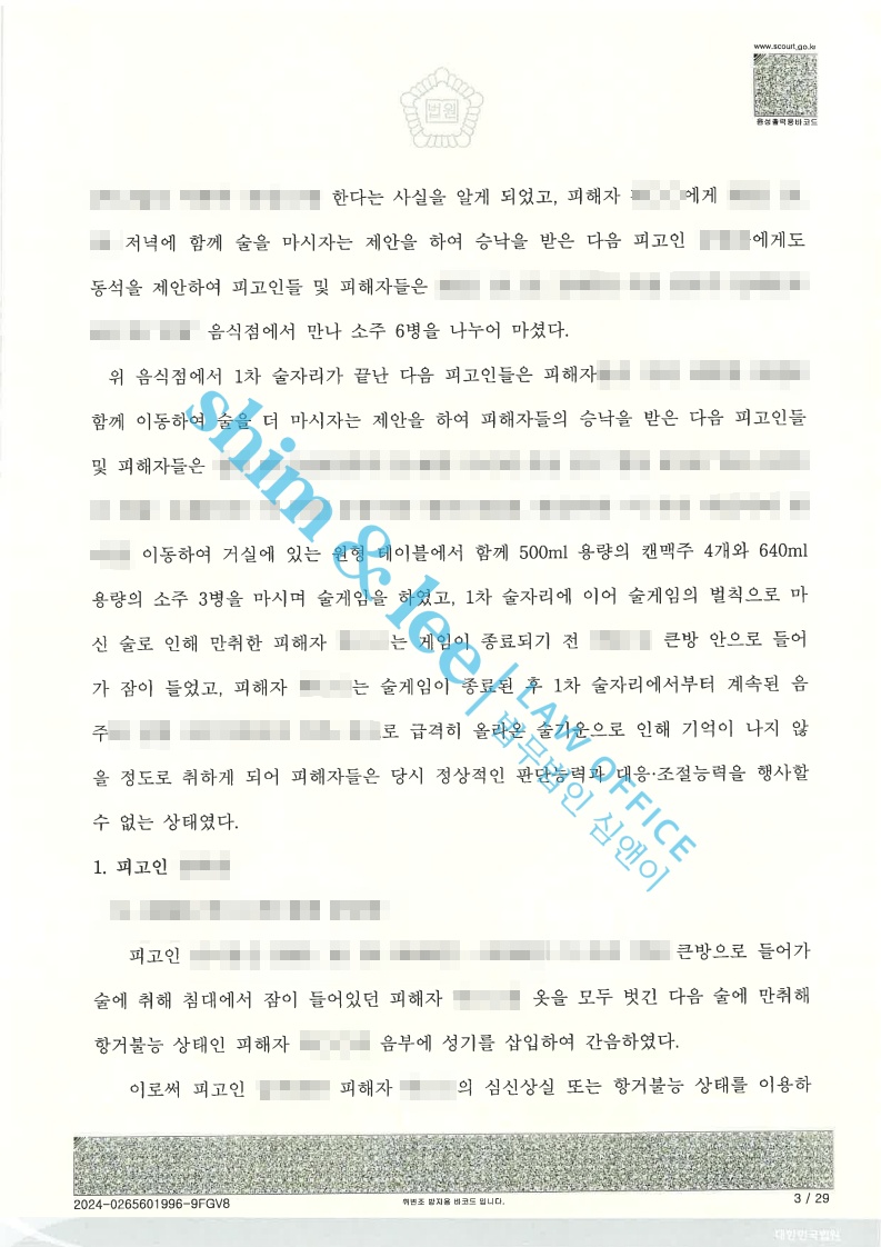 형사고소대학 과팅에서 만난 남자에게 준강간 당한 사건 2025.09.05불구속 구공판 -