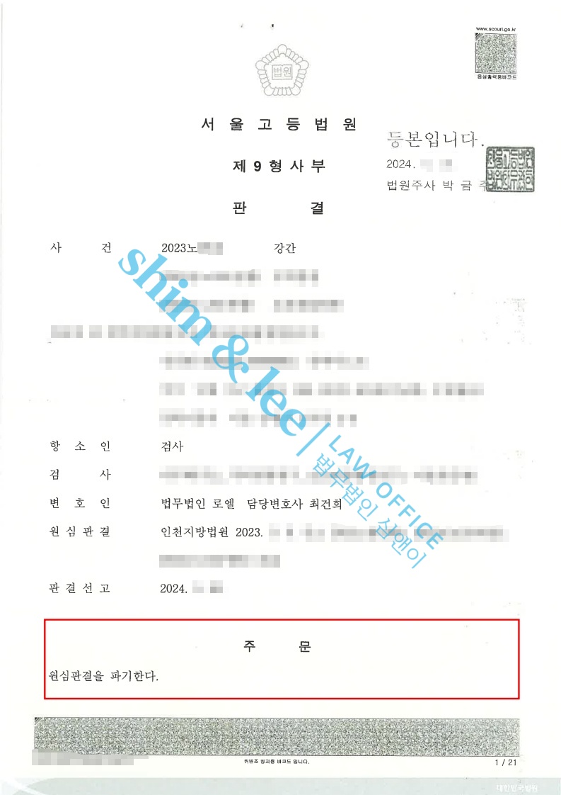 1심의 판결을 뒤집고자, 심앤이 변호사팀은