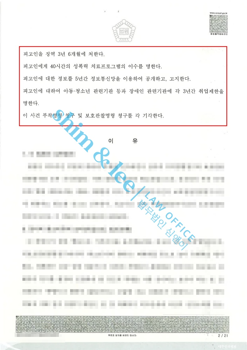 취업제한 3년 / 성폭력 치료강의 40시간 -