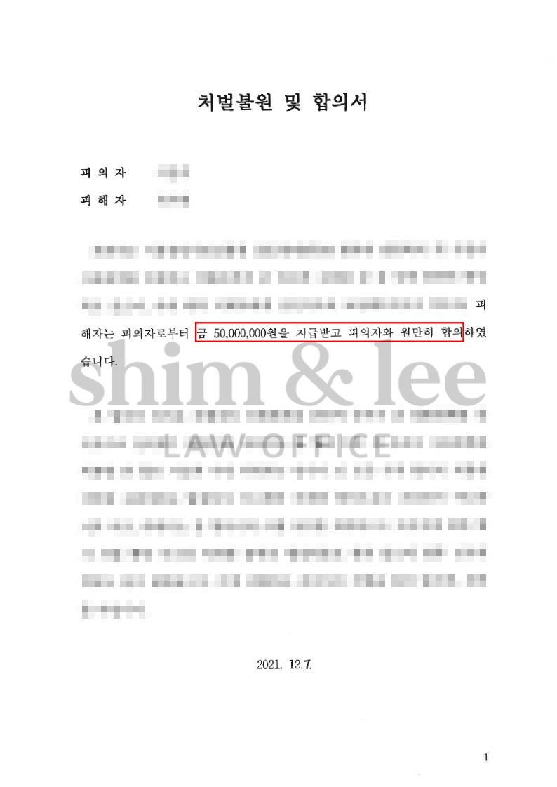 가해자측에서는 갑자기 상황이 불리하게 바뀌자 합의를 요청해왔으며, 결국 5천만 원에 합의가 성사되었습니다.