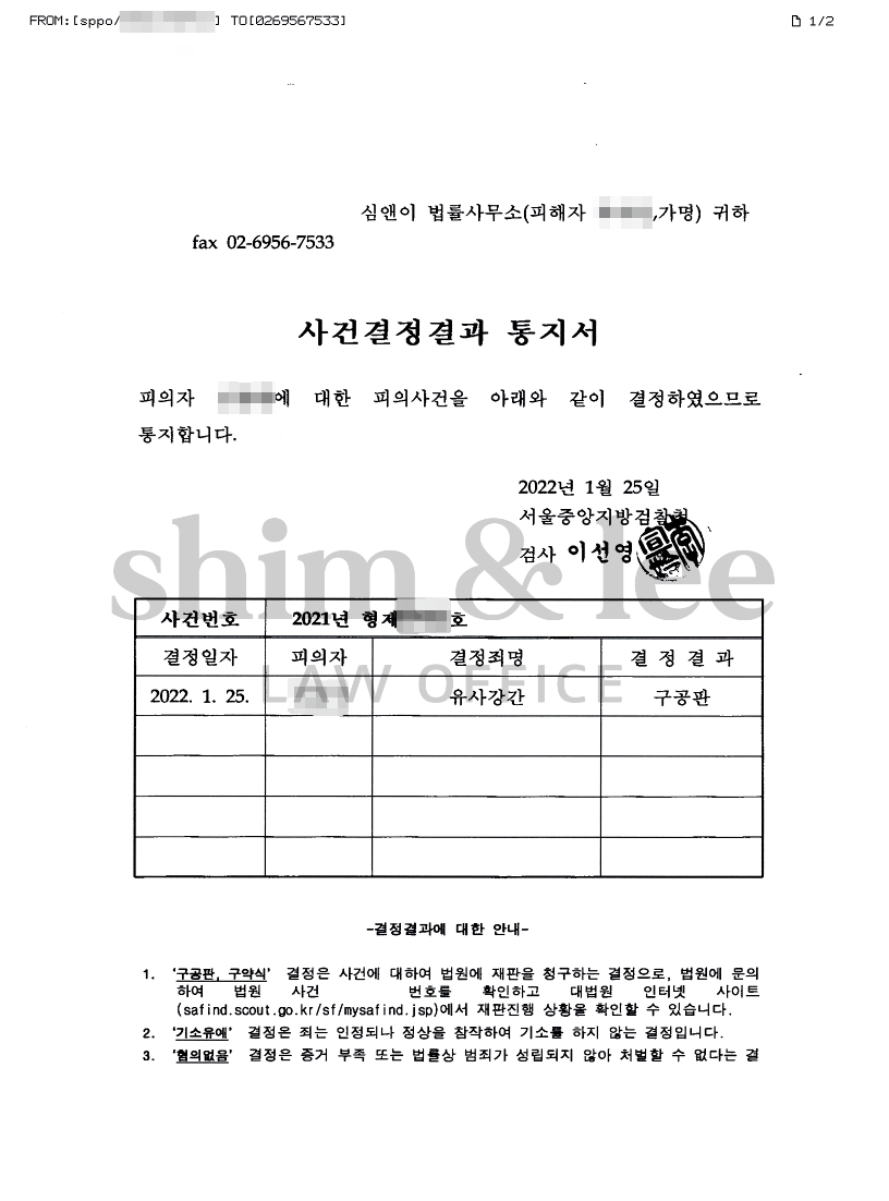 형사고소마사지사를 유사강간한 사례 2022.05.17정식기소처분 -