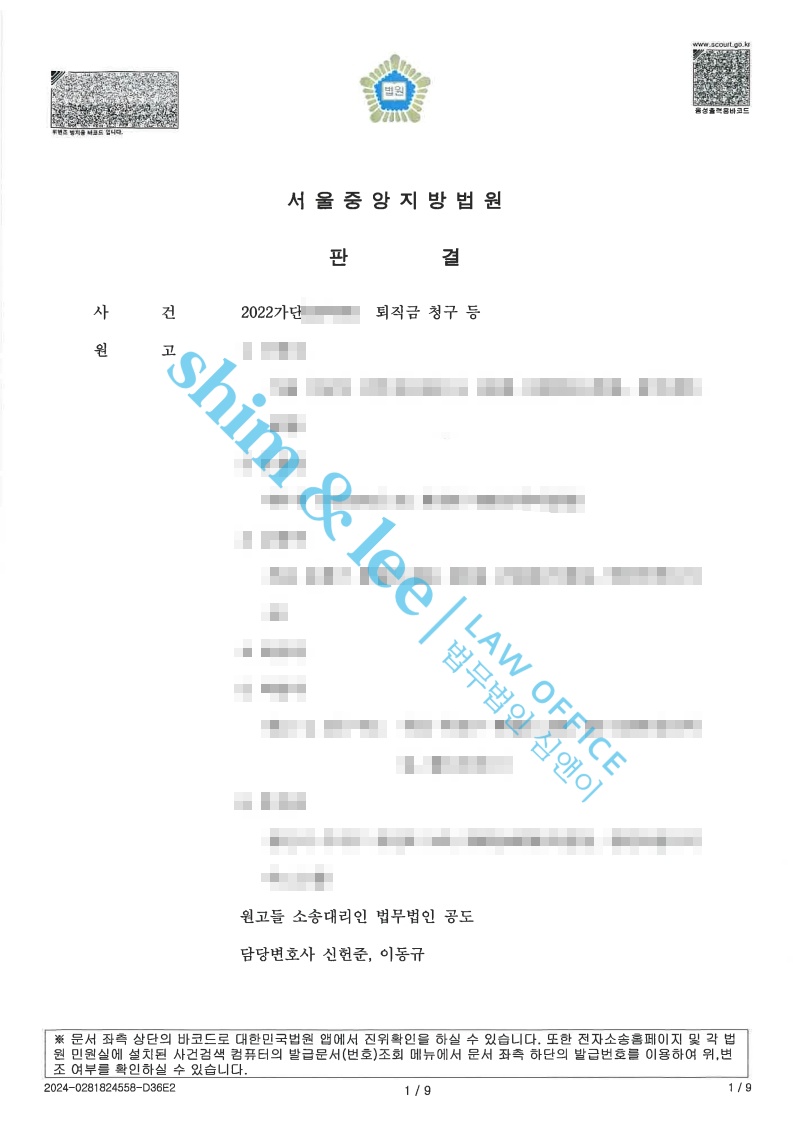 - 결과적으로 법원 재판부는 심앤이의 주장을 모두 인정하였고, 의사들의 임금 삭감이 적법한 절차에 따라 이루어졌다는 점과 자발적으로 동의하여 삭감한 급여까지 회사가 나중에 지급할 의무는 없다는 점을 정식 판결로 인정받을 수 있었습니다.