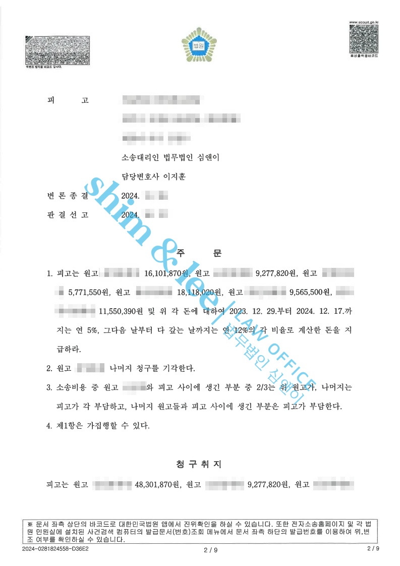 ※ 업로드된 내용 전문과 이미지 파일 등 일체의 콘텐츠는 법무법인 심앤이의 독자적인 표현물로써, 그 전체 또는 일부를 무단으로 복사 ·재배포하거나 자신의 이름으로 게시하는 일체의 행위를 금합니다.