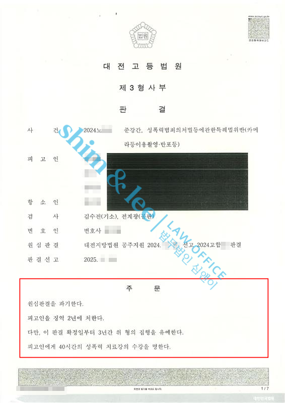 형사고소성관계 중 몰카 피해, 집행유예 3년 선고 받아낸 사건 2025.11.07징역 1년 / 집행유예 3년