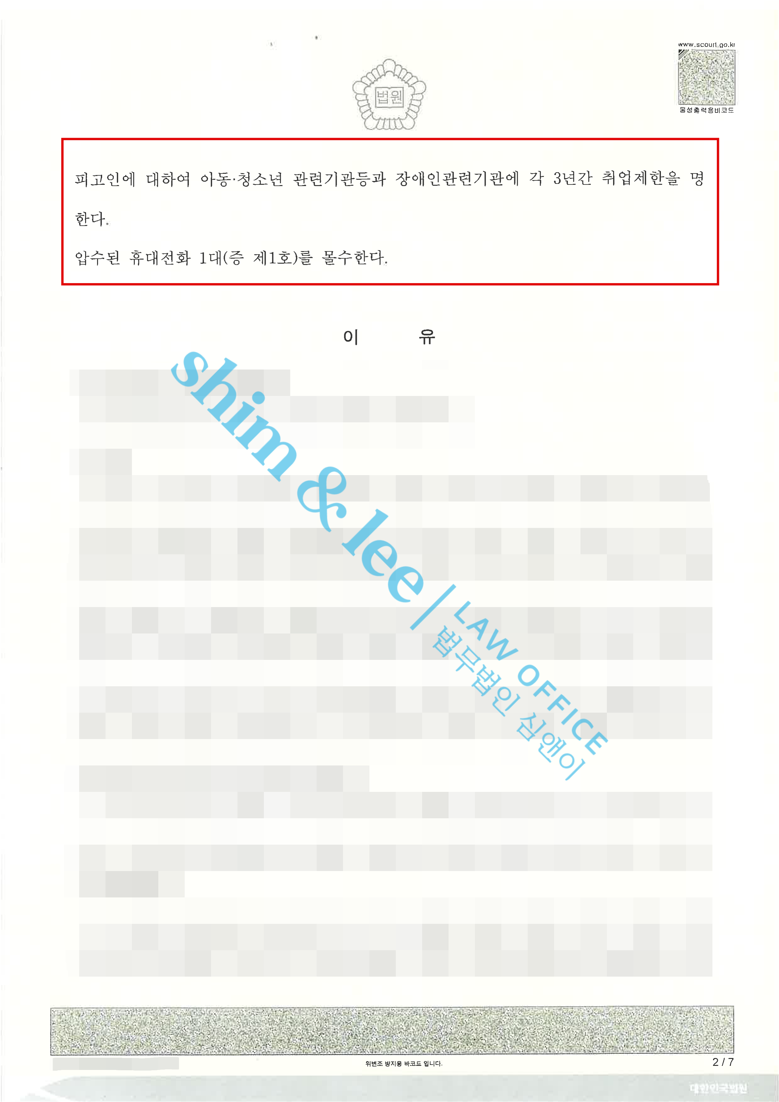 취업제한 3년 / 성폭력 치료강의 40시간 -