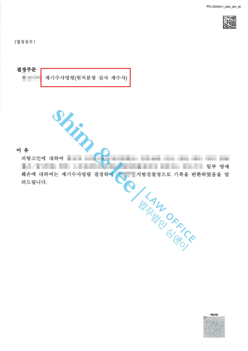 - 한편 아쉽게도 일부 혐의에 대한 항고는 기각되었으며, 이에 즉시 항고기각이유고지서를 열람 및 복사하여 기각 사유를 확인하였습니다. 특히 단순한 기각 문구가 아닌 심앤이가 항고장에서 제기한 주장들을 이례적으로 상세히 검토했다는 내용이 포함되어 있었습니다. 이에 심앤이는 여기서 멈추지 않고 재정신청을 통해 법원의 최종 판단을 받을 수 있도록 끝까지 의뢰인을 조력할 계획입니다.