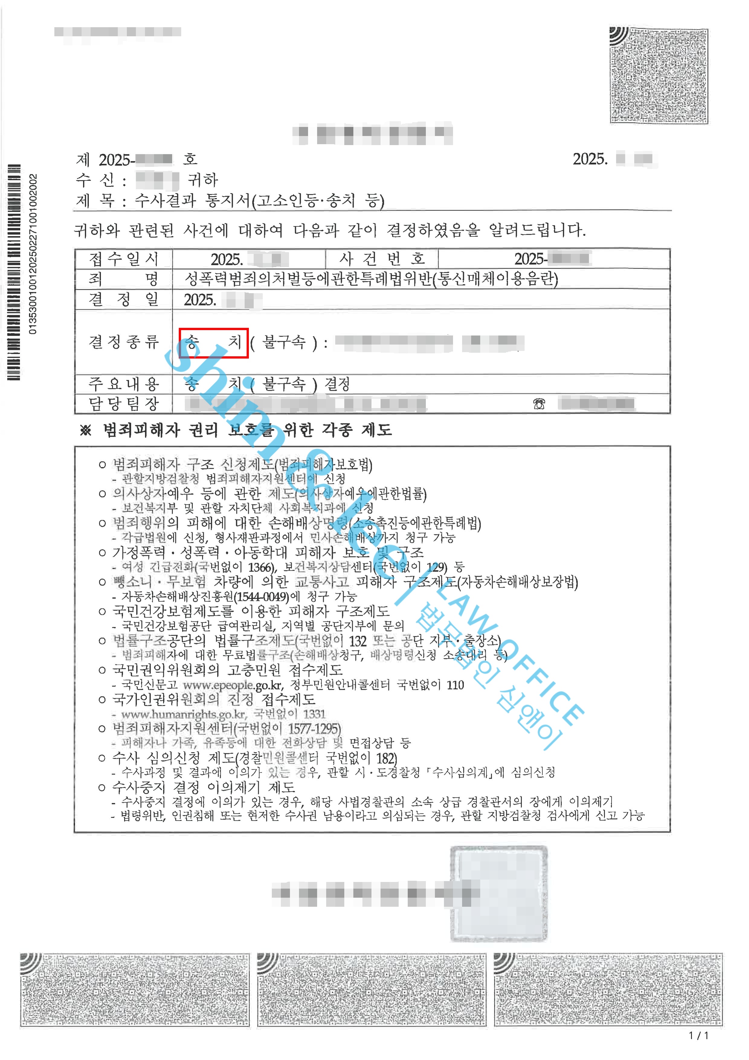 - 현재 사건은 검찰의 판단을 기다리고 있으며, 심앤이는 이에 멈추지 않고 가해자가 정식 기소될 수 있도록 끝까지 최선을 다할 것입니다.