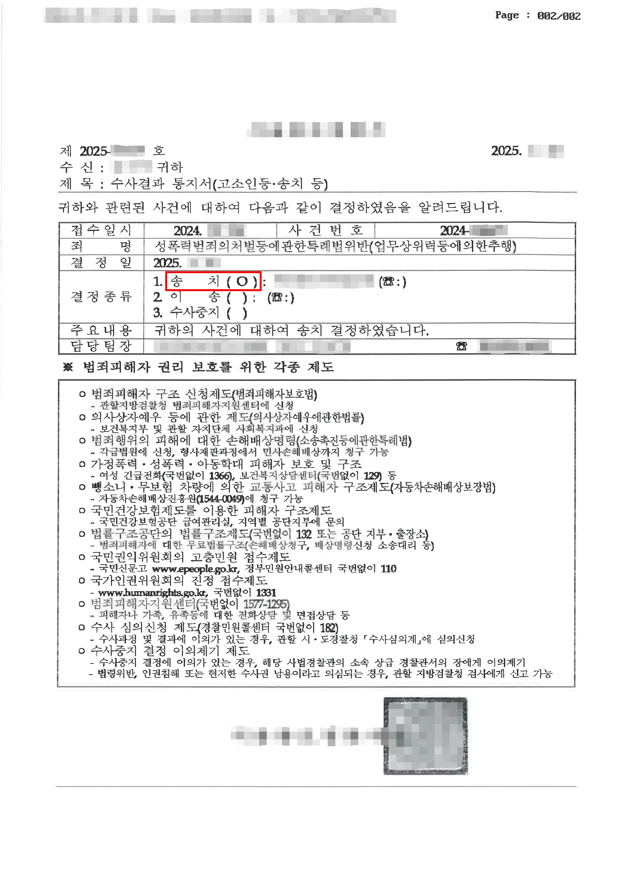 형사고소직장 상사에게 성추행 당한 사건 2025.09.05검찰송치 -