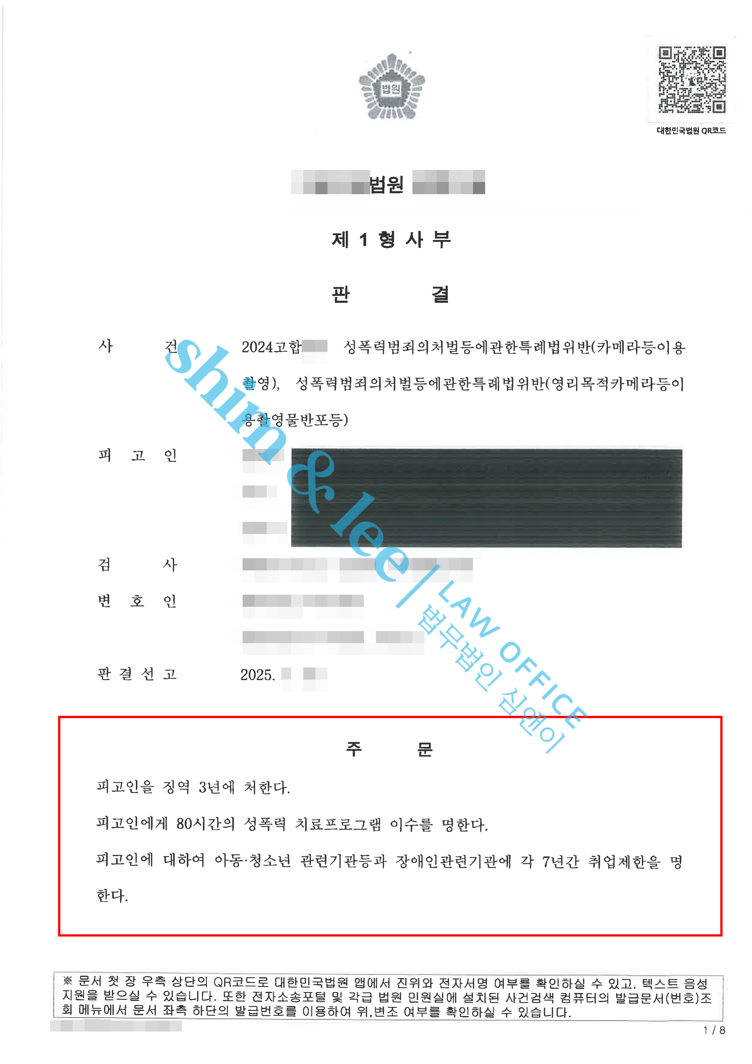 형사고소성관계 중 몰카 피해, 집행유예 3년 선고 받아낸 사건 2025.11.07징역 1년 / 집행유예 3년