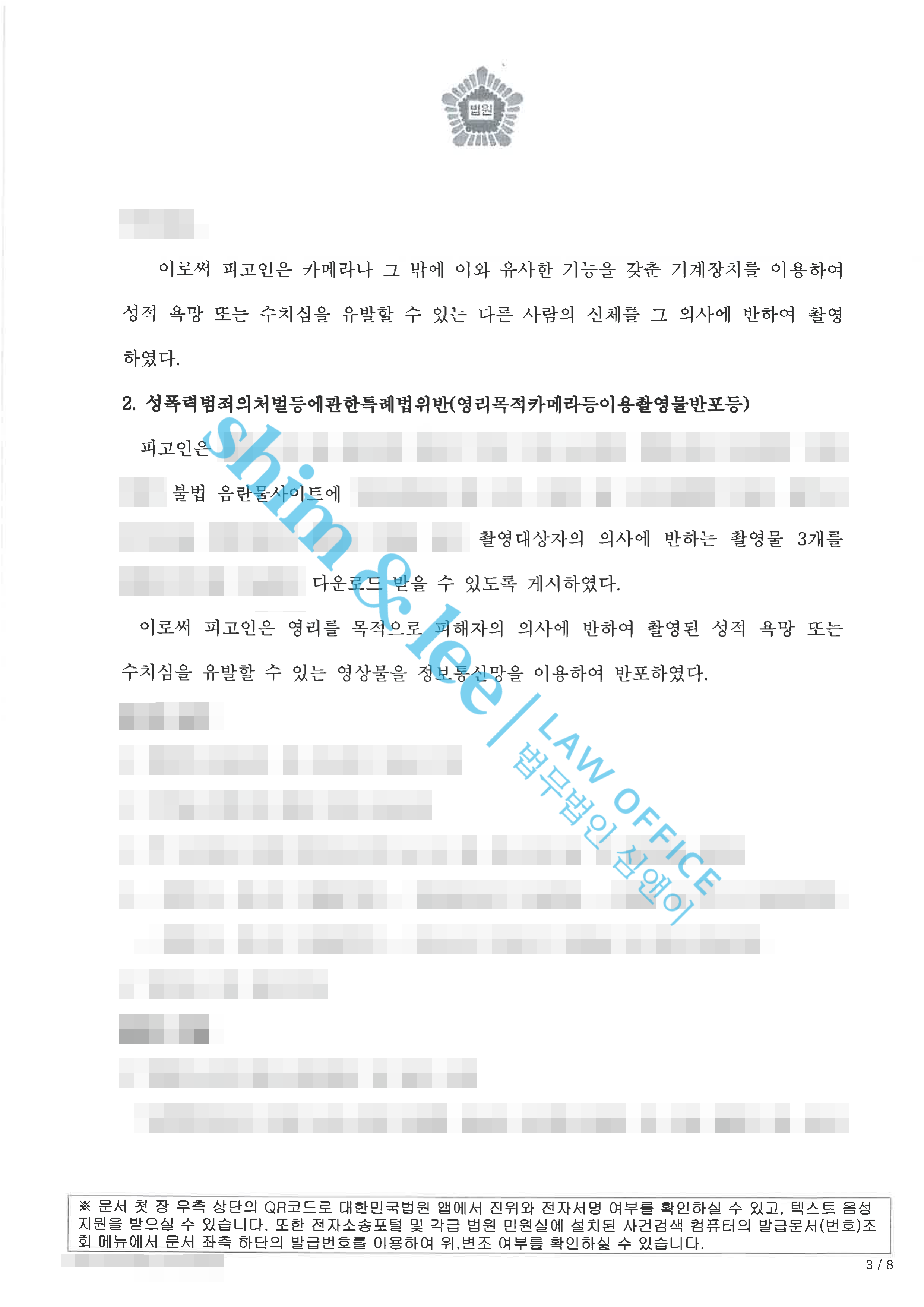 - 특히, ①가해자는 신입 유튜버였던 피해자에게 의도적으로 접근해 영상통화를 유도한 뒤, 나체를 보여달라고 요구하고 몰래 녹화한 점에서 피해자의 취약한 상황을 악용한 계획적 범행으로 죄질이 매우 중하며 ②피해자 피해는 일파만파 커지고 있는데 불법 촬영물이 20개에 달하는 사이트로 퍼져 삭제만 최소 1년이 걸리고, 피해자 실명까지 기재하여 피해의 정도는 가히 산정할 수 없을 정도로 극심한 점을 주장하였습니다.