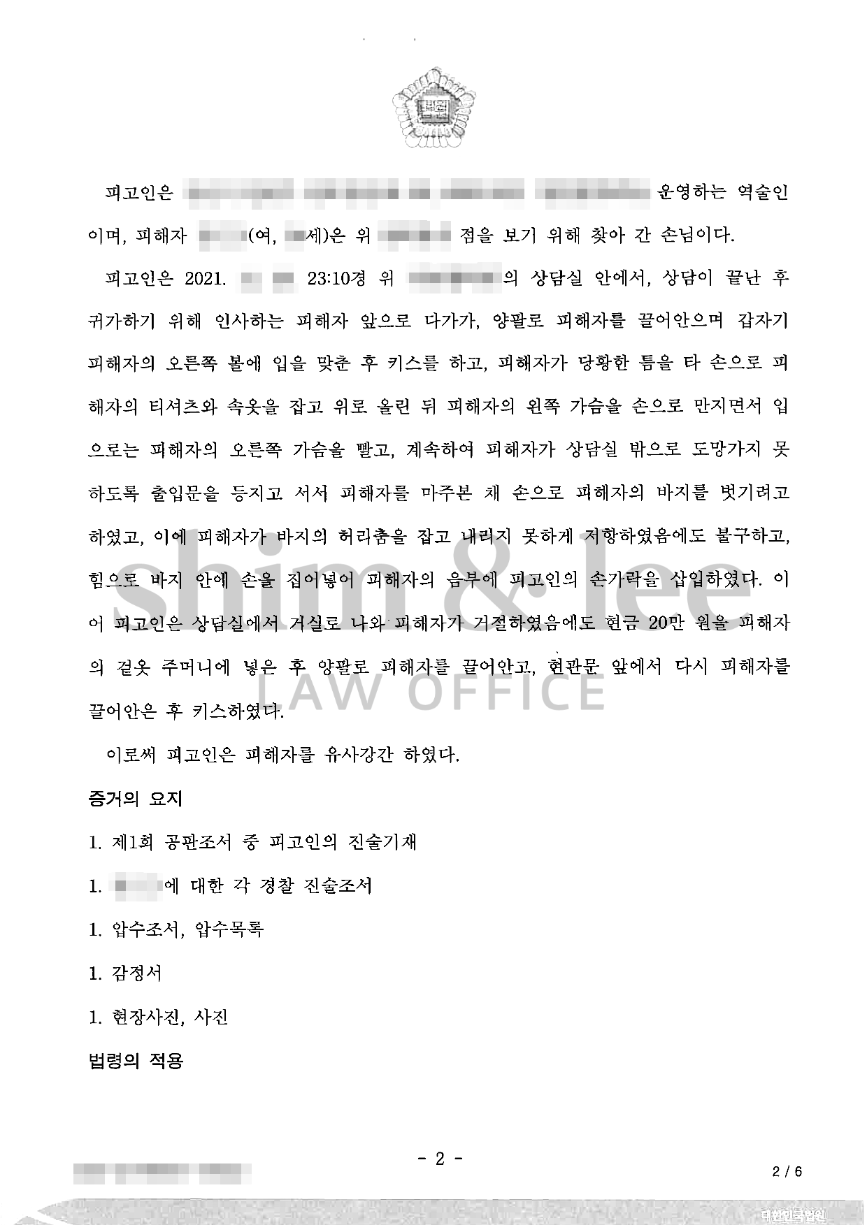 형사고소술자리에서 처음 본 남자에게 강제추행, 폭행 피해 당한 사건 2025.12.12불구속 구공판 -