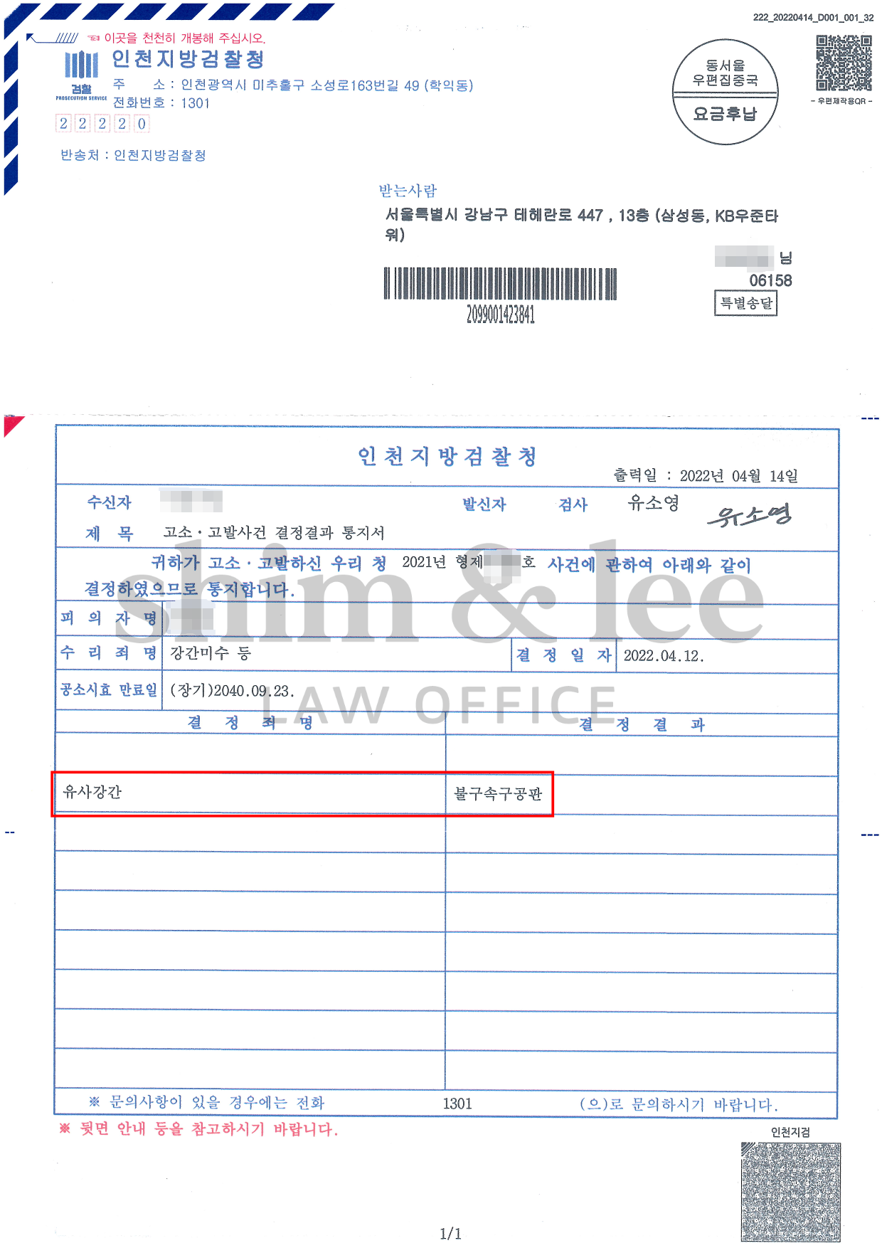 의견서 제출 이후 담당 검사 면담을 통해 다시 한 번 설득했으며, 결국 검사는 피해자측의 주장이 논리적이라며 전면 재수사를 결정했습니다.
