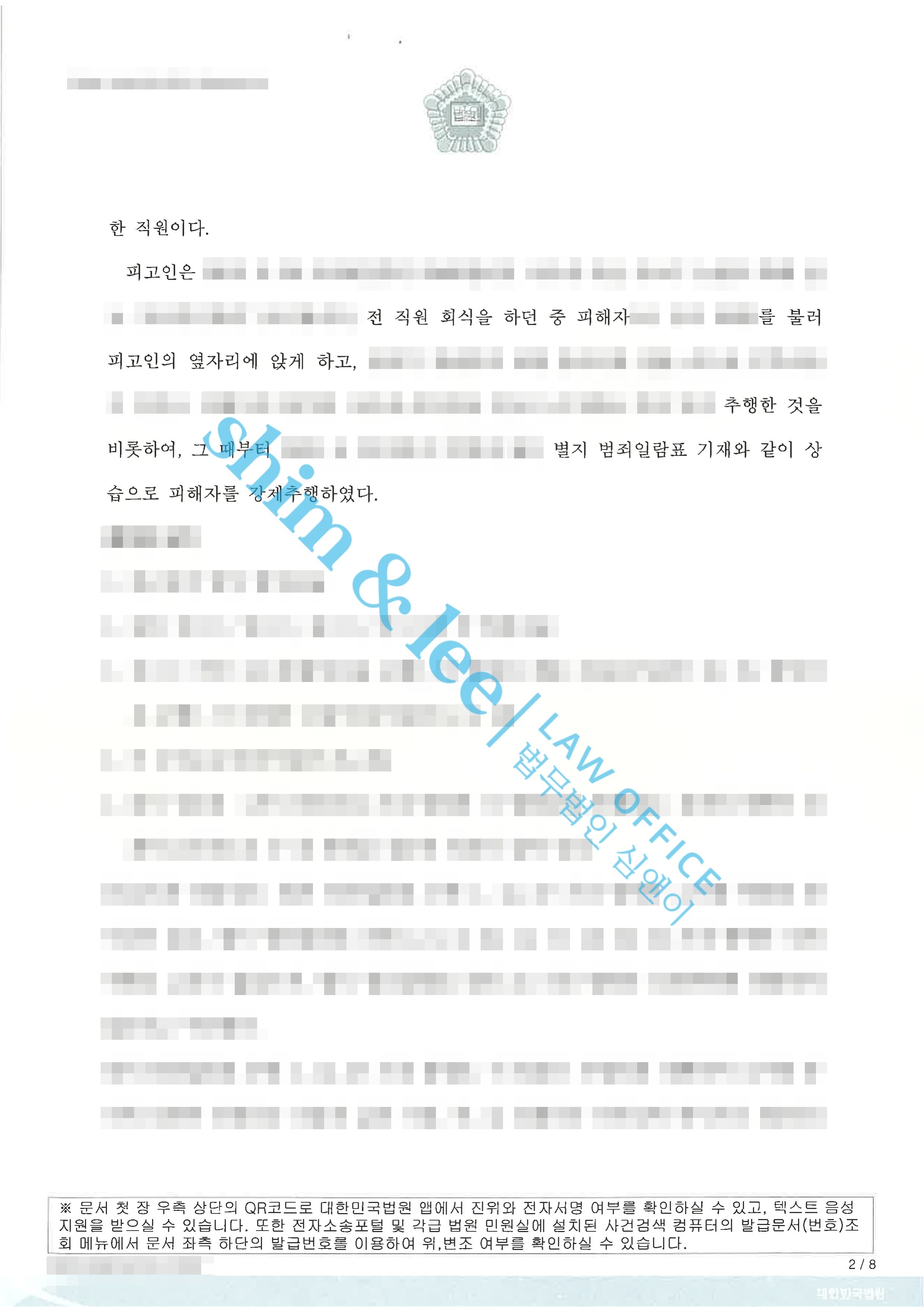 형사고소직장 상사인 가해자로부터 2년 동안 약 30차례 추행당한 사례 2021.11.30징역 1년 6월 / 집행유예 3년