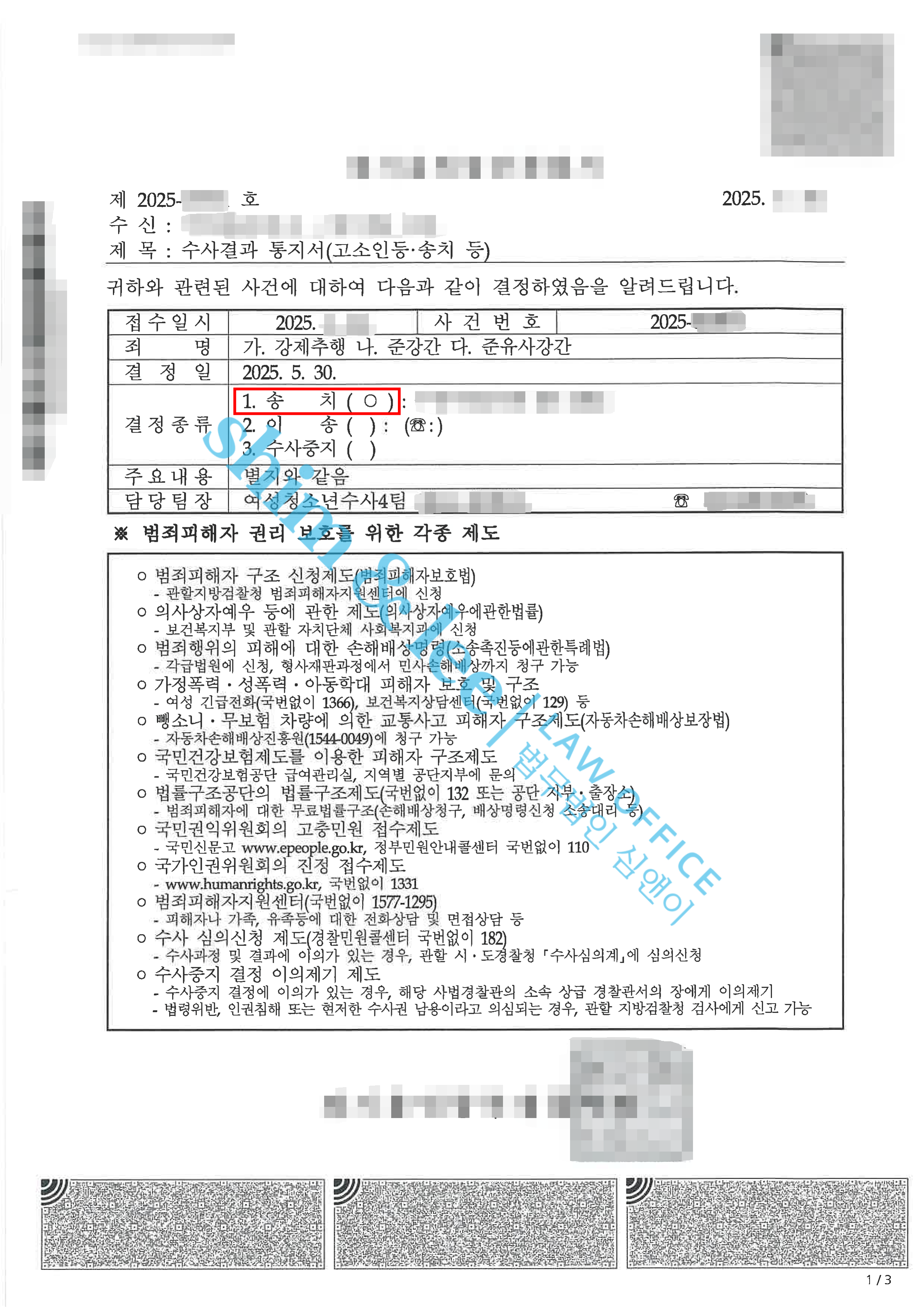 -경찰이 불송치 결정을 내릴 경우, 피해자는 검찰에 이의신청을 제기할 수 있습니다. 하지만 실제 이의신청이 받아들여지는 비율은 통상 10% 내외이기 때문에 단순한 진술 반복으로는 결과를 바꾸기 어렵습니다.