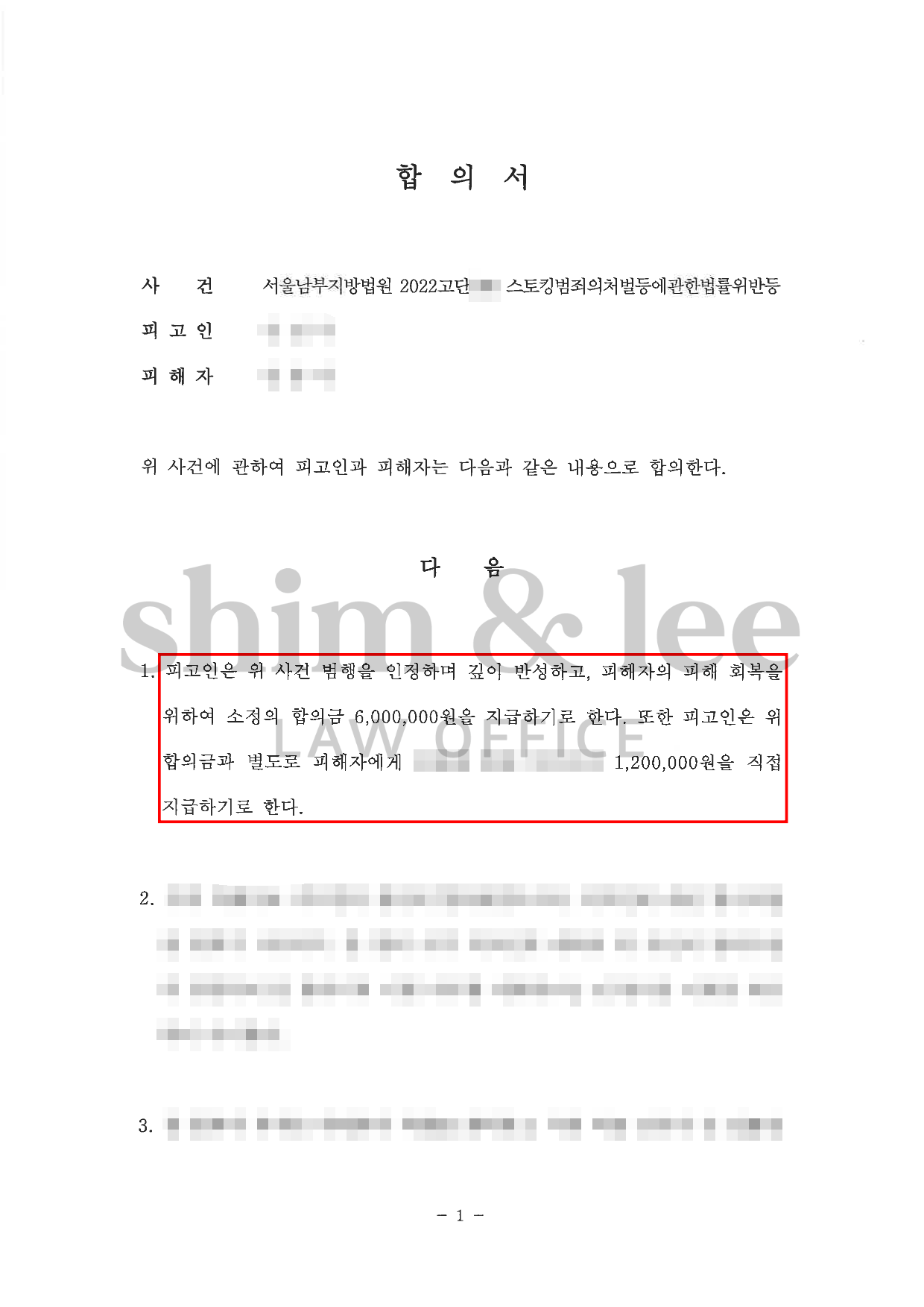 합의금보다는 가해자로부터 제대로 된 사과를 받고, 앞으로 다시는 스토킹을 반복하지 않도록 안전장치를 만드는 것에 가장 큰 신경을 썼습니다.